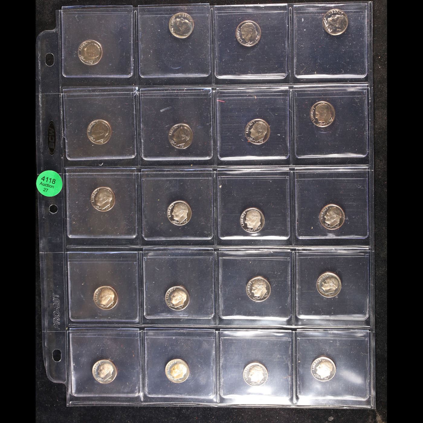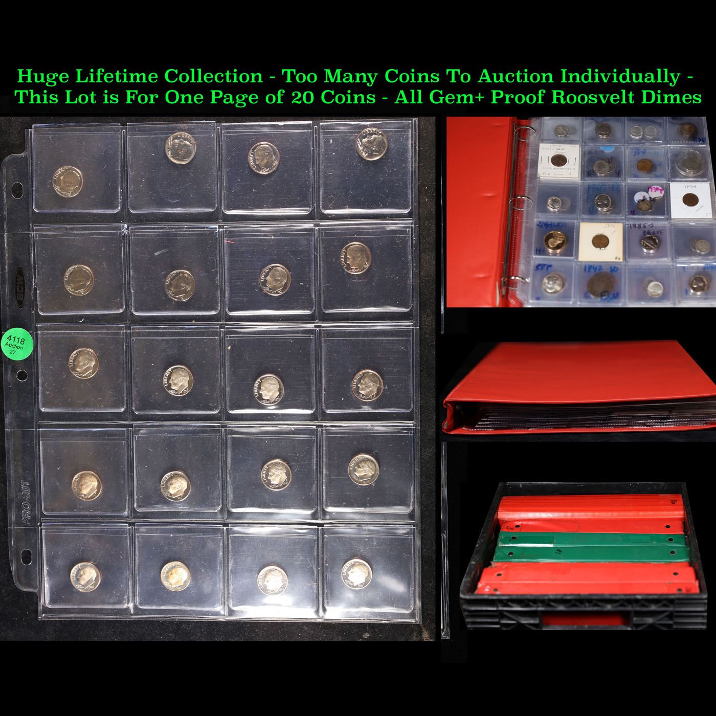 Huge Liifetime Collection - Too Many Coins To Auction Individually - This Lot is For One Page of 20 Proof Roosevelt Dimes Dates Range From 1970-2006. We have received a huge collection of over 10 thousand US coins in flips, 2x2 holders, and 20 coin pages. We are forced, due to limited lots, to sell this collection in pages of 20 coins. This Page is For 20 Proof Roosevelt Dimes. Trends 1981-s pr69 DCAM $38, 1980-s pr69 DCAM $16, 1972-s pr69 DCAM $24, 1971-s pr69 DCAM $115, 1987-s pr69 DCAM $16, 1984-s pr69 DCAM $16, 1983-s pr69 DCAM $16, 1982-s pr69 DCAM $16, 1992-s pr69 DCAM $16, 2000-s pr69 DCAM $16, 1990-s pr69 DCAM $16, 1988-s pr69 DCAM $16, 2006-s pr69 DCAM $16, 2003-s pr69 DCAM $16, 1976-s pr69 DCAM $15, 2002-s pr69 DCAM $16, 1997-s pr69 DCAM $16, 1998-s pr69 DCAM $16, 1970-s pr69 DCAM $75, 1996-s pr69 DCAM $16. We estimate the value of each page to meet or exceed $200 in value! Good luck and happy hunting.
