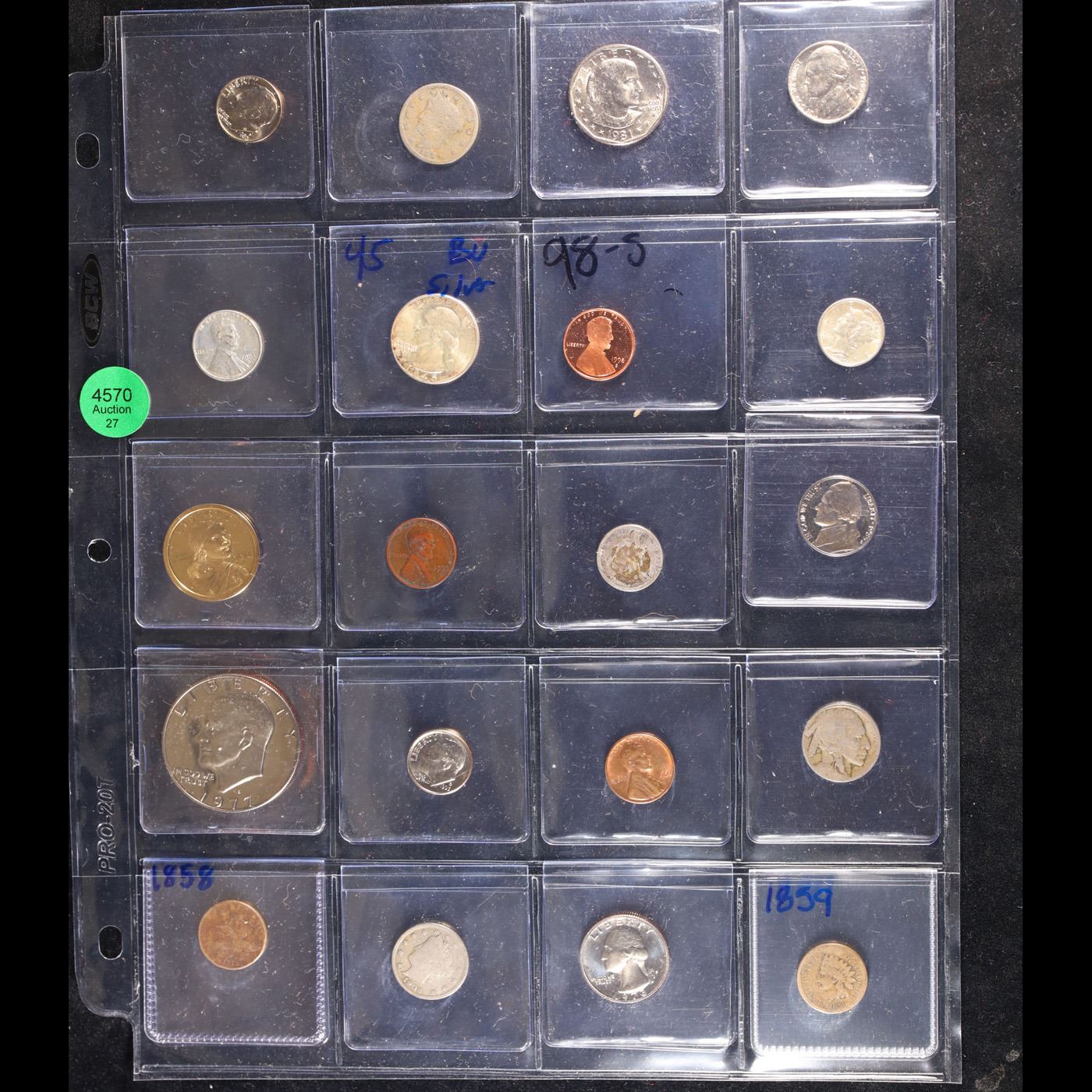 Huge Liifetime Collection - Too Many Coins To Auction Individually - This Lot is For One Page of 20 Coins - All US, No Foreign WOW!. We have received a huge collection of over 10 thousand US coins in flips, 2x2 holders, and 20 coin pages. We are forced, due to limited lots, to sell this collection in pages of 20 coins. All of the pages include Silver Coins. Most contain Indian Cents, Proof Coins, Barber Coinage, Bust Coinage, Lincoln Cents, Flying Eagles, Jefferson Nickels, Roosevelt Dimes, Buffalo Nickels, Eisenhower Dollars, Kennedy Halves, Large Cents including some Draped Bust Large Cents, Mercury Dimes, and Liberty V Nickels. These pages could not be reviewed by anyone in our office due to time constraints. We estimate the value of each page to meet or exceed $200 in value! Good luck and happy hunting.