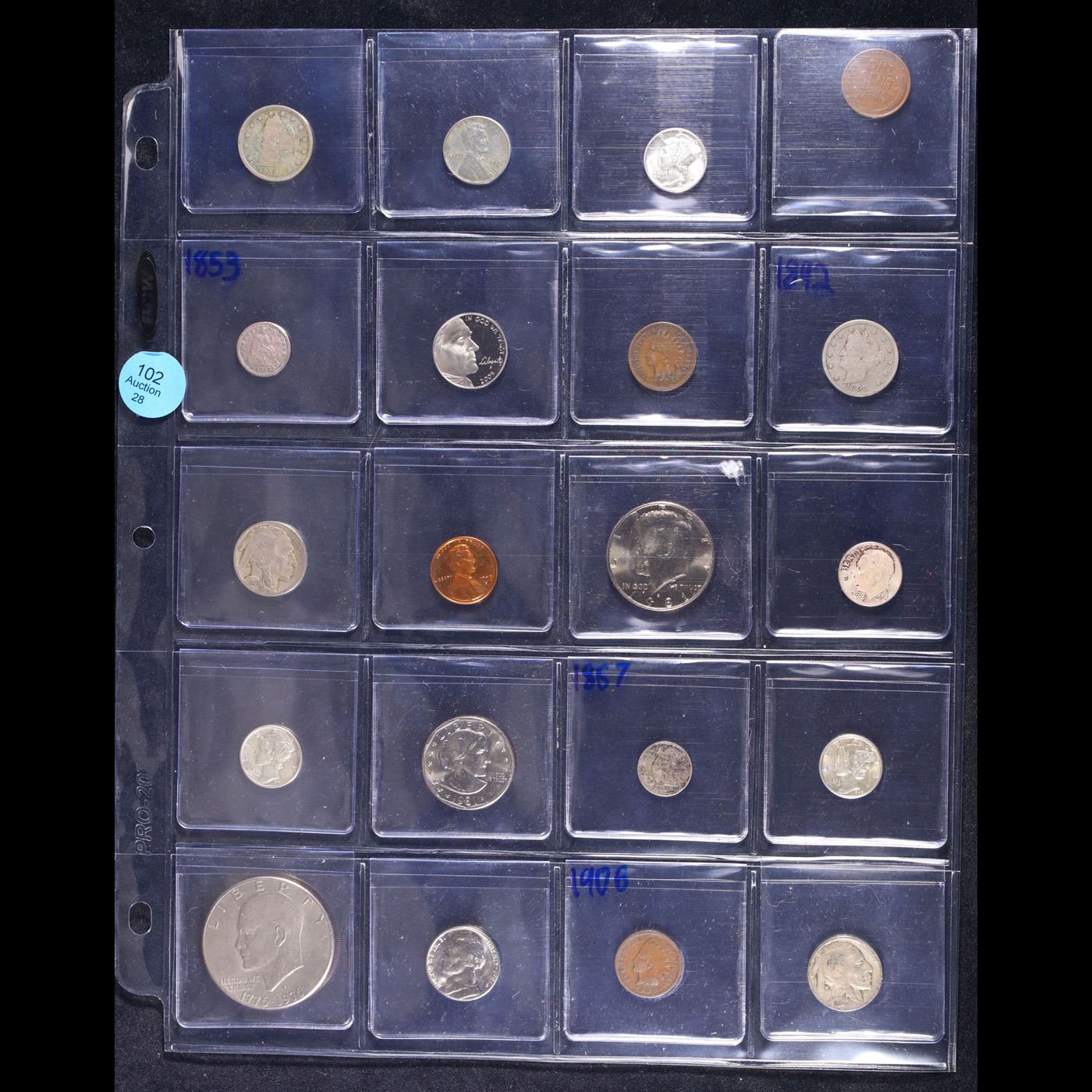 Huge Liifetime Collection - Too Many Coins To Auction Individually - This Lot is For One Page of 20 Coins - All US, No Foreign WOW!. We have received a huge collection of over 10 thousand US coins in flips, 2x2 holders, and 20 coin pages. We are forced, due to limited lots, to sell this collection in pages of 20 coins. All of the pages include Silver Coins. Most contain Indian Cents, Proof Coins, Barber Coinage, Bust Coinage, Lincoln Cents, Flying Eagles, Jefferson Nickels, Roosevelt Dimes, Buffalo Nickels, Eisenhower Dollars, Kennedy Halves, Large Cents including some Draped Bust Large Cents, Mercury Dimes, and Liberty V Nickels. These pages could not be reviewed by anyone in our office due to time constraints. We estimate the value of each page to meet or exceed $200 in value! Good luck and happy hunting.