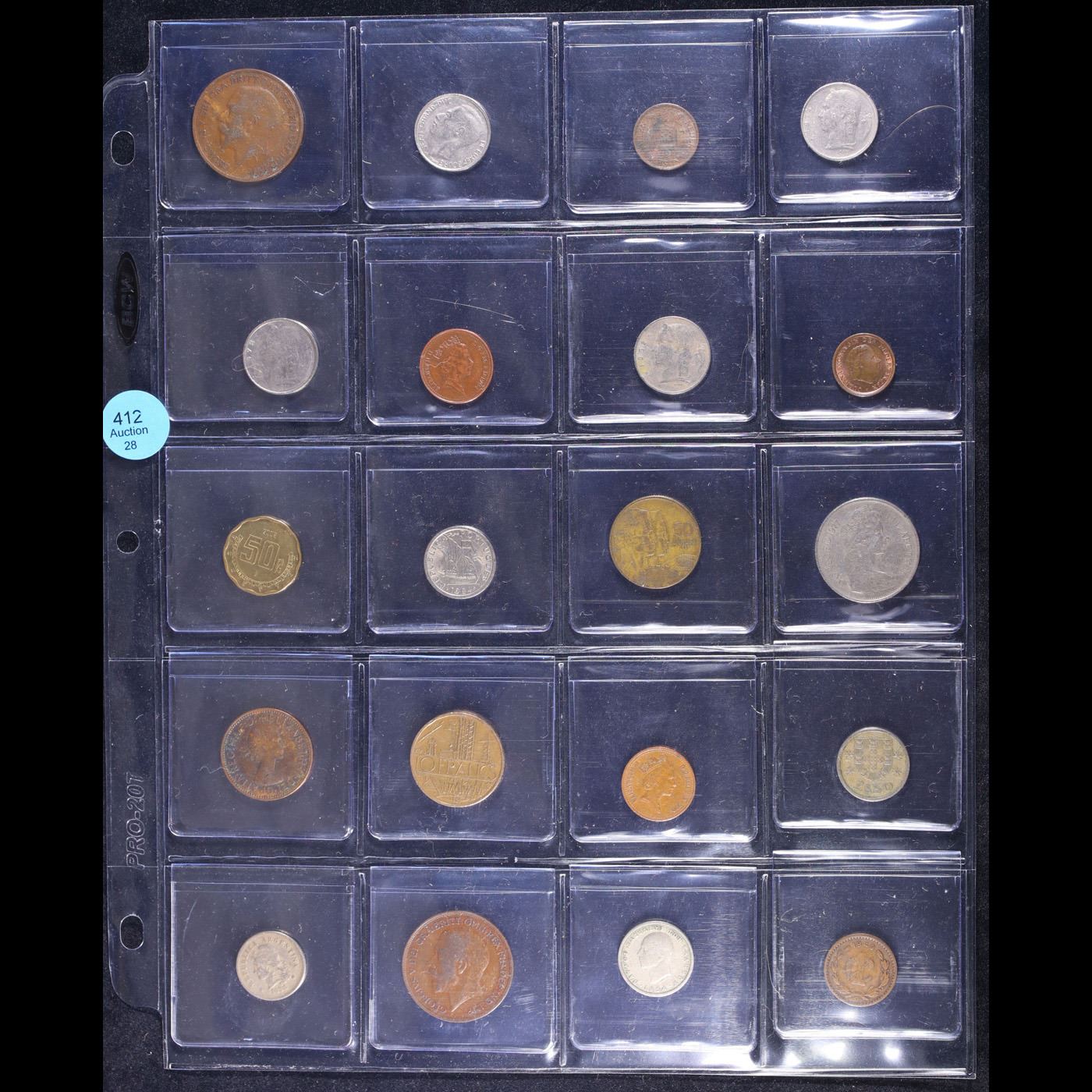 Huge Liifetime Collection - Too Many Coins To Auction Individually - This Lot is For One Page of 20 Foreign Coins. We have received a huge collection of over 10 thousand US coins in flips, 2x2 holders, and 20 coin pages. We are forced, due to limited lots, to sell this collection in pages of 20 coins. All of the pages include Silver Coins. Most contain Indian Cents, Proof Coins, Barber Coinage, Bust Coinage, Lincoln Cents, Flying Eagles, Jefferson Nickels, Roosevelt Dimes, Buffalo Nickels, Eisenhower Dollars, Kennedy Halves, Large Cents including some Draped Bust Large Cents, Mercury Dimes, and Liberty V Nickels. These pages could not be reviewed by anyone in our office due to time constraints. We estimate the value of each page to meet or exceed $200 in value! Good luck and happy hunting.