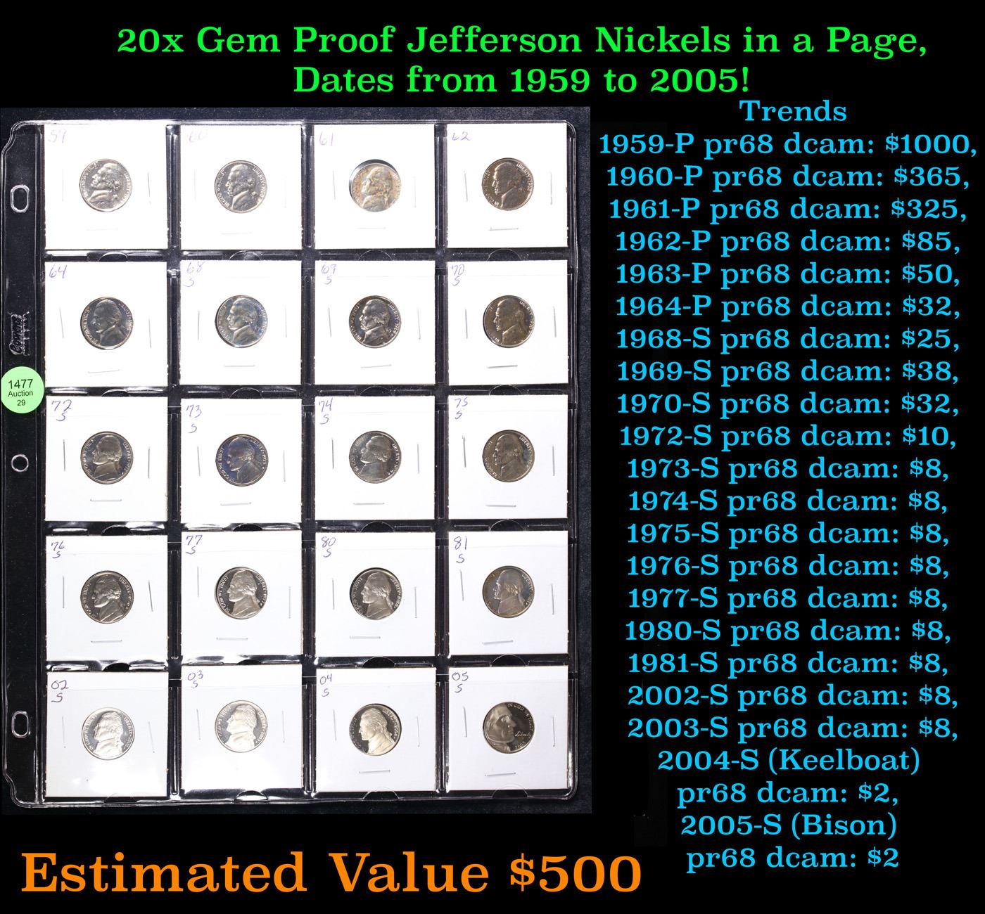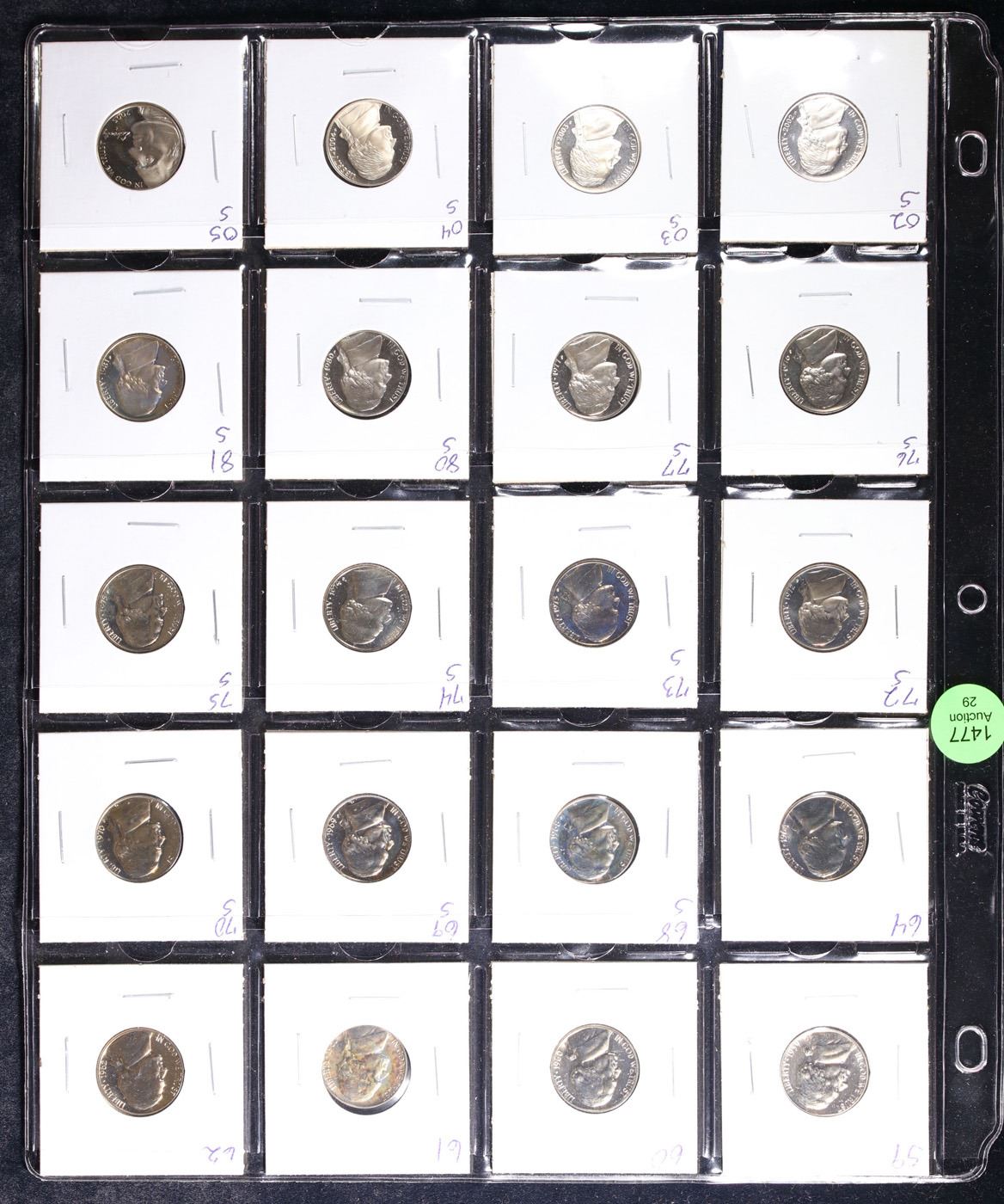 Huge Liifetime Collection - Too Many Coins To Auction Individually - This Lot is For One Page of 20 Proof Jefferson Nickels Dates Range From 1971-2006.
