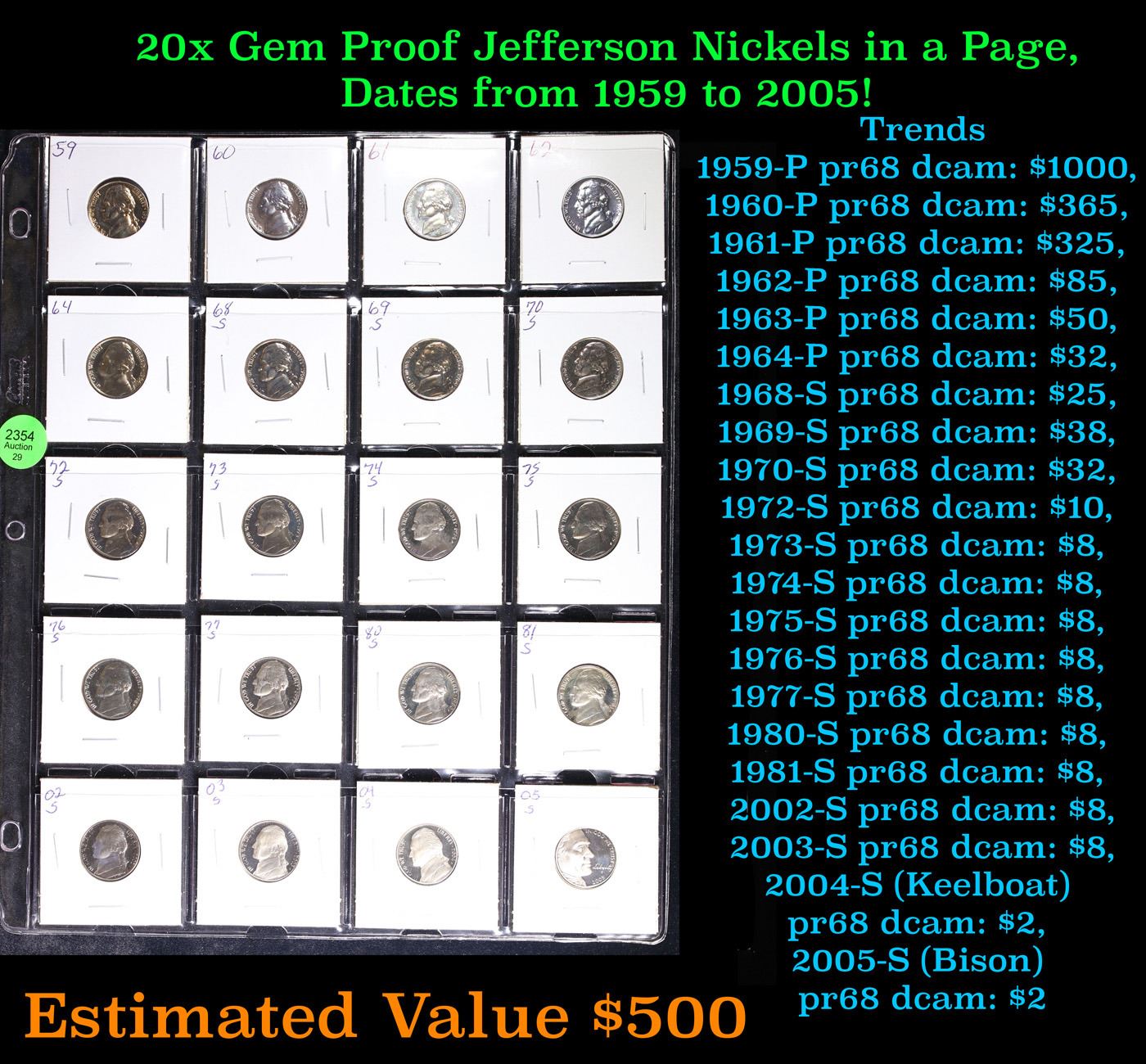 Huge Liifetime Collection - Too Many Coins To Auction Individually - This Lot is For One Page of 20 Proof Jefferson Nickels Dates Range From 1971-2006.