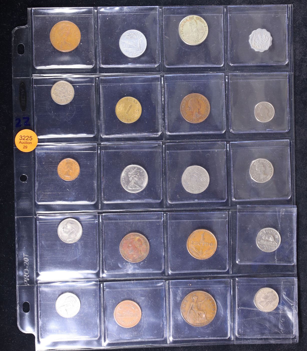 Huge Liifetime Collection - Too Many Coins To Auction Individually - This Lot is For One Page of 20 Foreign Coins. We have received a huge collection of over 10 thousand US coins in flips, 2x2 holders, and 20 coin pages. We are forced, due to limited lots, to sell this collection in pages of 20 coins. All of the pages include Silver Coins. Most contain Indian Cents, Proof Coins, Barber Coinage, Bust Coinage, Lincoln Cents, Flying Eagles, Jefferson Nickels, Roosevelt Dimes, Buffalo Nickels, Eisenhower Dollars, Kennedy Halves, Large Cents including some Draped Bust Large Cents, Mercury Dimes, and Liberty V Nickels. These pages could not be reviewed by anyone in our office due to time constraints. We estimate the value of each page to meet or exceed $200 in value! Good luck and happy hunting.