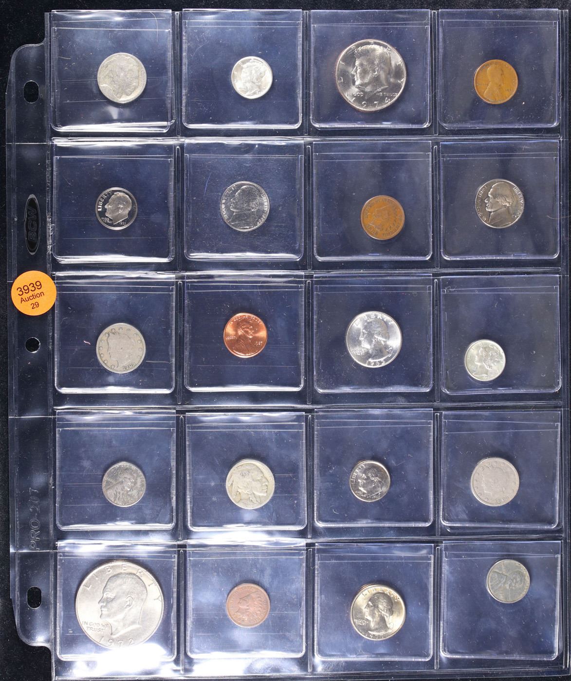 Huge Liifetime Collection - Too Many Coins To Auction Individually - This Lot is For One Page of 20 Coins - All US, No Foreign WOW!. We have received a huge collection of over 10 thousand US coins in flips, 2x2 holders, and 20 coin pages. We are forced, due to limited lots, to sell this collection in pages of 20 coins. All of the pages include Silver Coins. Most contain Indian Cents, Proof Coins, Barber Coinage, Bust Coinage, Lincoln Cents, Flying Eagles, Jefferson Nickels, Roosevelt Dimes, Buffalo Nickels, Eisenhower Dollars, Kennedy Halves, Large Cents including some Draped Bust Large Cents, Mercury Dimes, and Liberty V Nickels. These pages could not be reviewed by anyone in our office due to time constraints. We estimate the value of each page to meet or exceed $200 in value! Good luck and happy hunting.