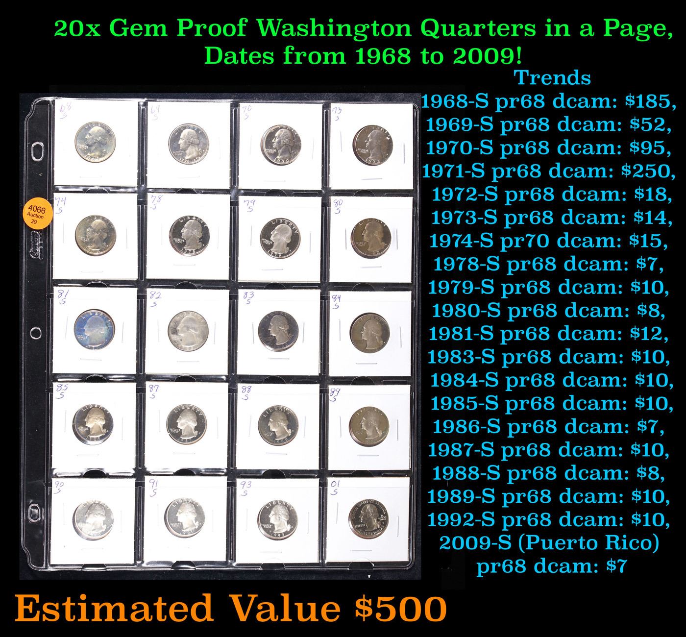 Huge Liifetime Collection - Too Many Coins To Auction Individually - This Lot is For One Page of 20 Proof Washington Quarters Dates Range From 1982-2006.