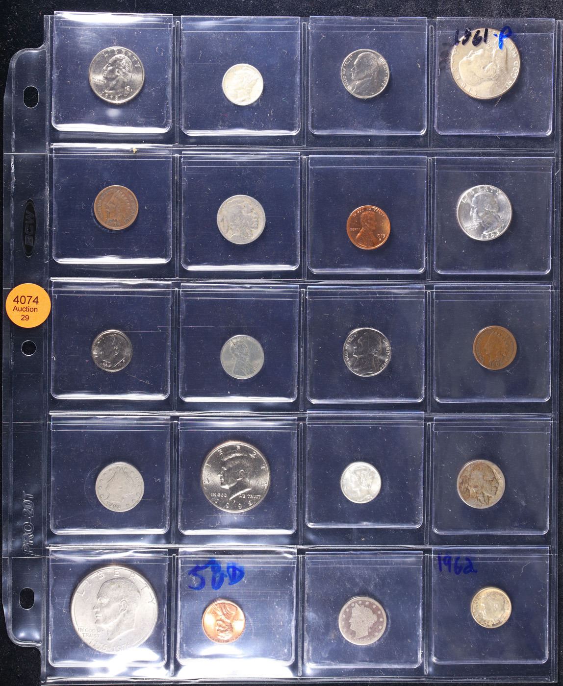 Huge Liifetime Collection - Too Many Coins To Auction Individually - This Lot is For One Page of 20 Coins - All US, No Foreign WOW!. We have received a huge collection of over 10 thousand US coins in flips, 2x2 holders, and 20 coin pages. We are forced, due to limited lots, to sell this collection in pages of 20 coins. All of the pages include Silver Coins. Most contain Indian Cents, Proof Coins, Barber Coinage, Bust Coinage, Lincoln Cents, Flying Eagles, Jefferson Nickels, Roosevelt Dimes, Buffalo Nickels, Eisenhower Dollars, Kennedy Halves, Large Cents including some Draped Bust Large Cents, Mercury Dimes, and Liberty V Nickels. These pages could not be reviewed by anyone in our office due to time constraints. We estimate the value of each page to meet or exceed $200 in value! Good luck and happy hunting.