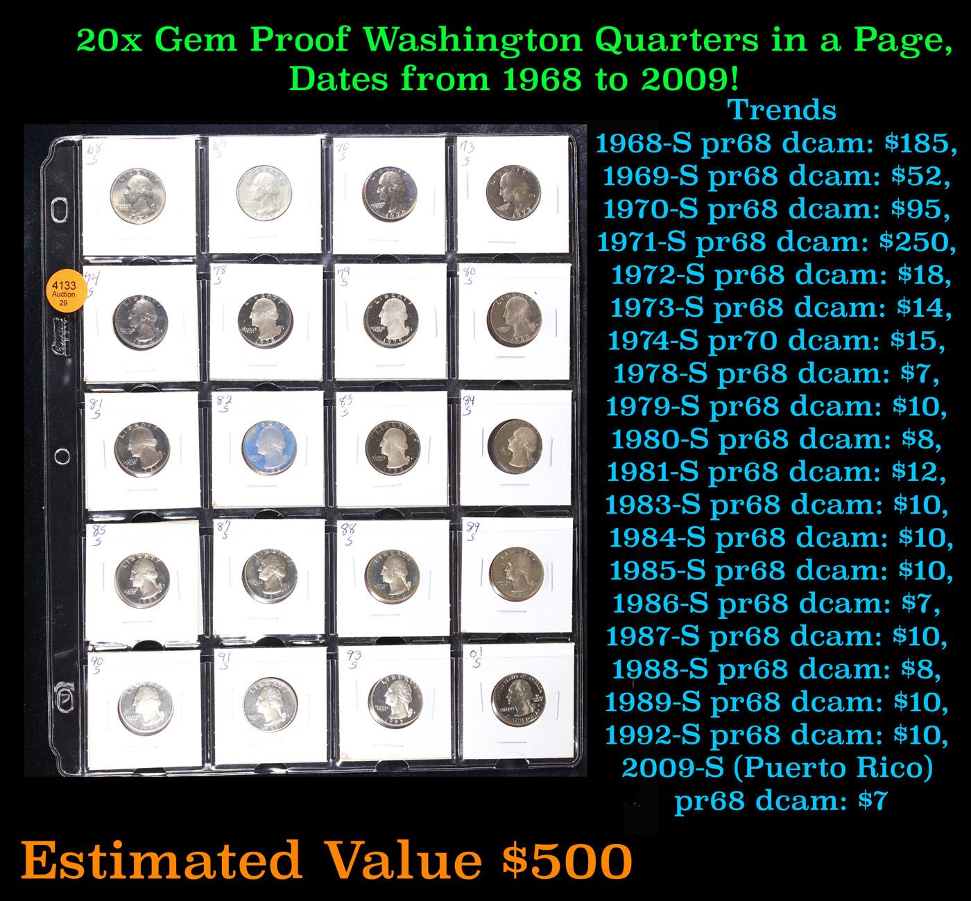 Huge Liifetime Collection - Too Many Coins To Auction Individually - This Lot is For One Page of 20 Proof Washington Quarters Dates Range From 1982-2006.