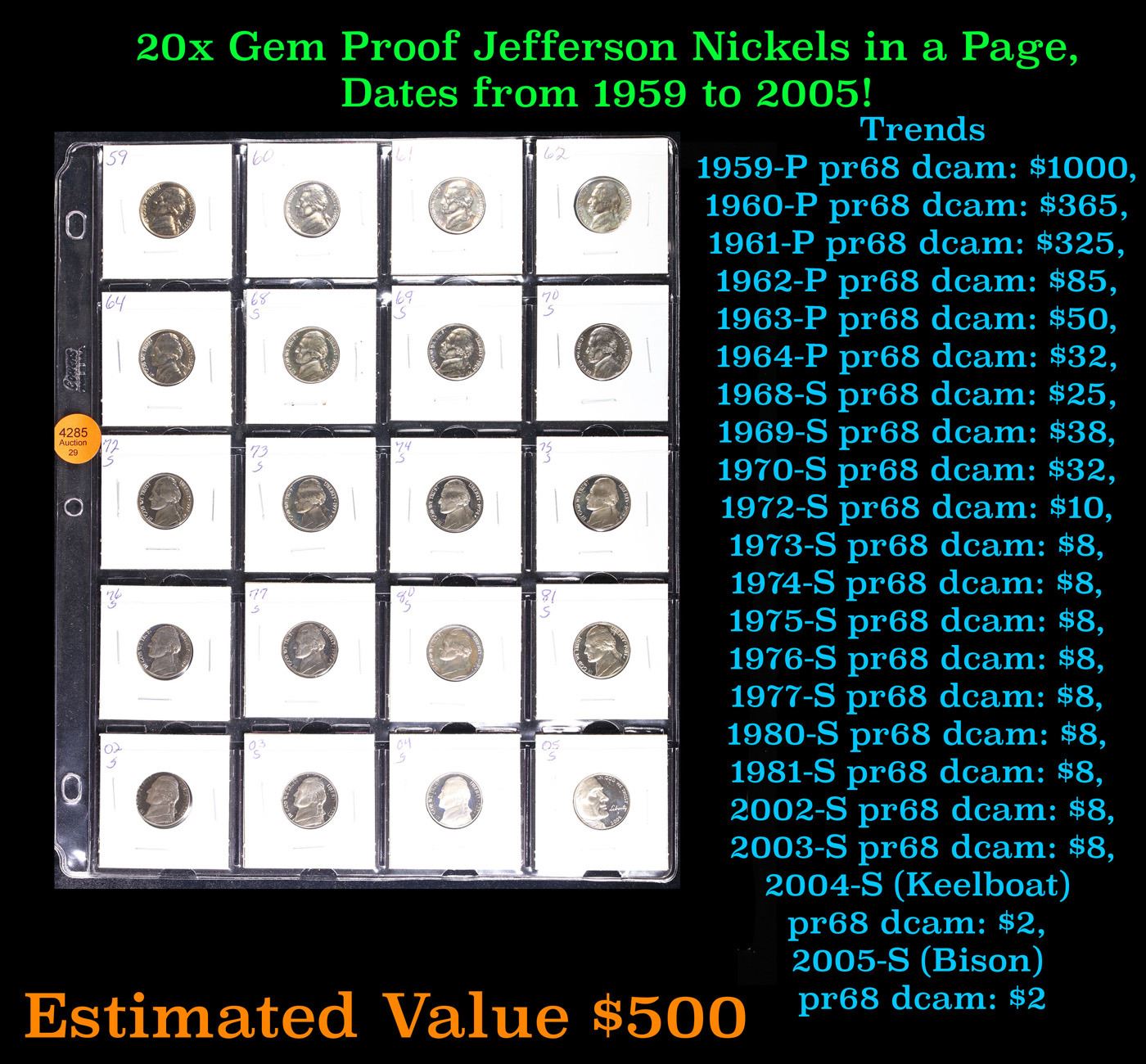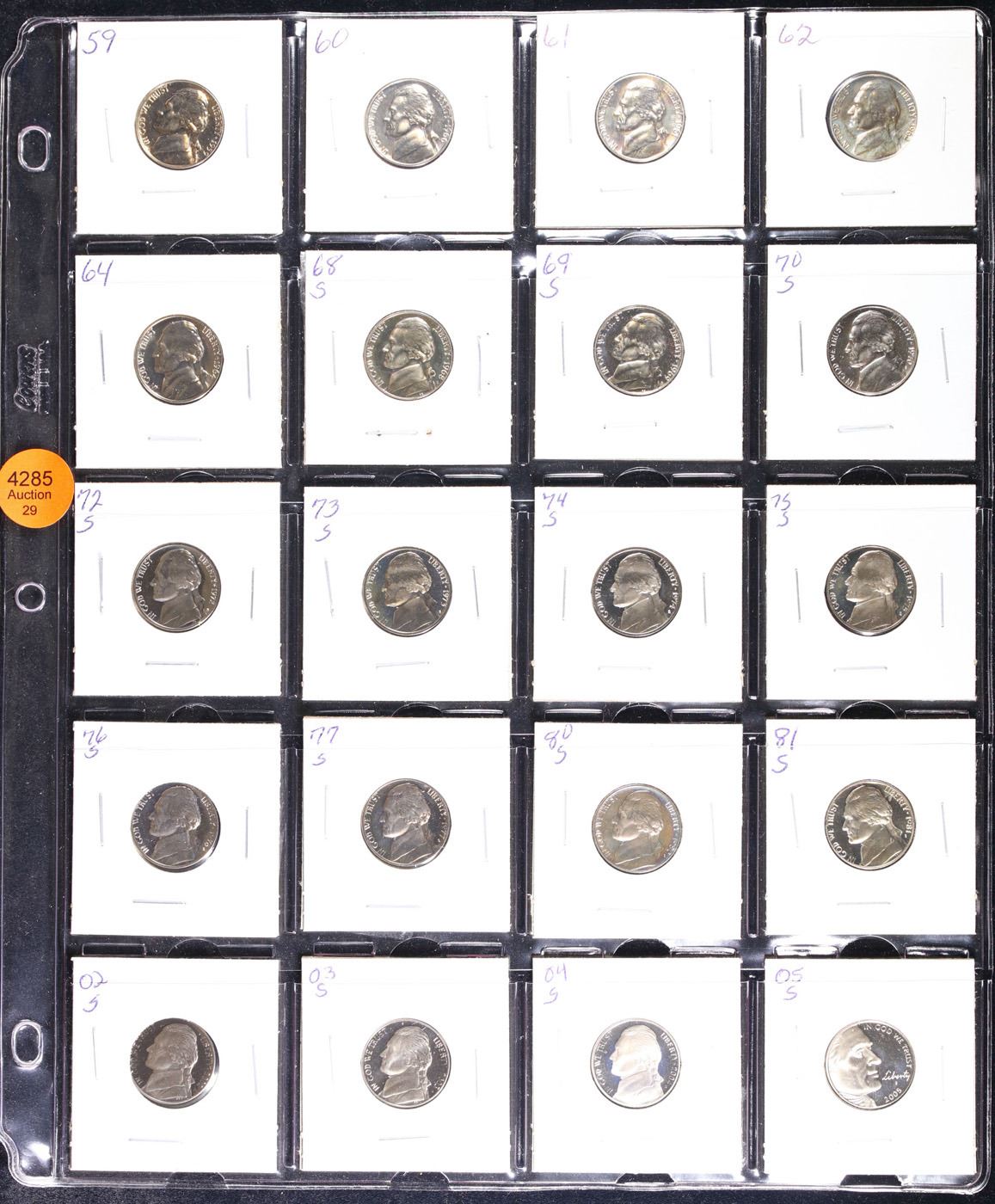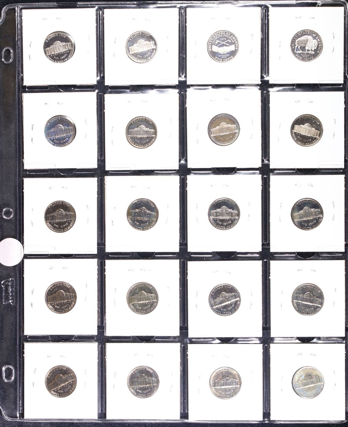 Huge Liifetime Collection - Too Many Coins To Auction Individually - This Lot is For One Page of 20 Proof Jefferson Nickels Dates Range From 1971-2006.