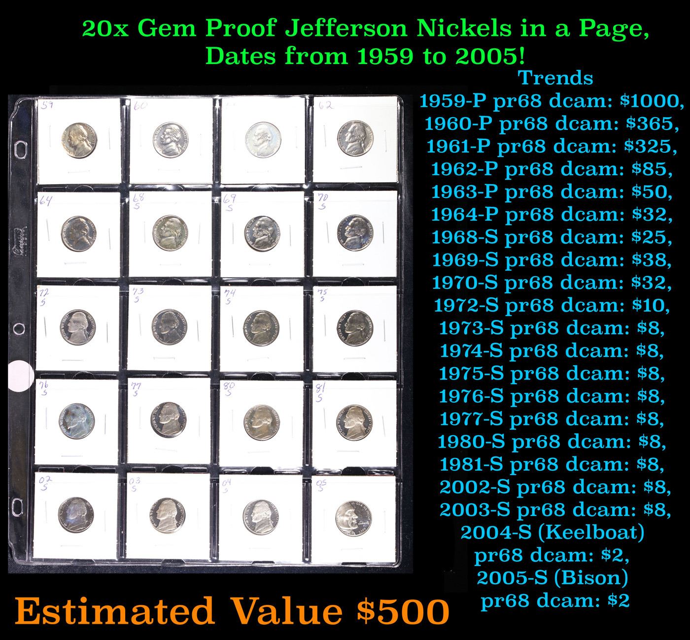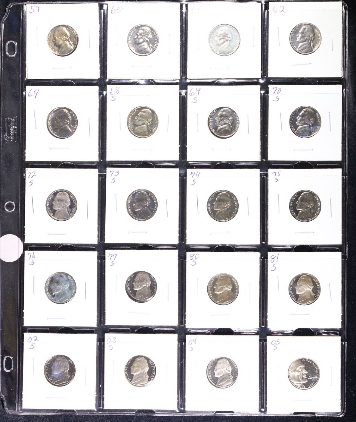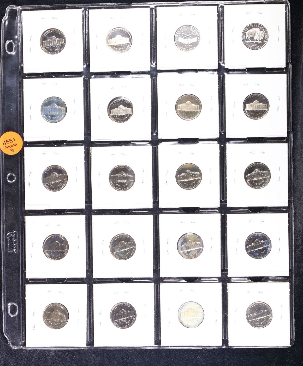 Huge Liifetime Collection - Too Many Coins To Auction Individually - This Lot is For One Page of 20 Proof Jefferson Nickels Dates Range From 1971-2006.
