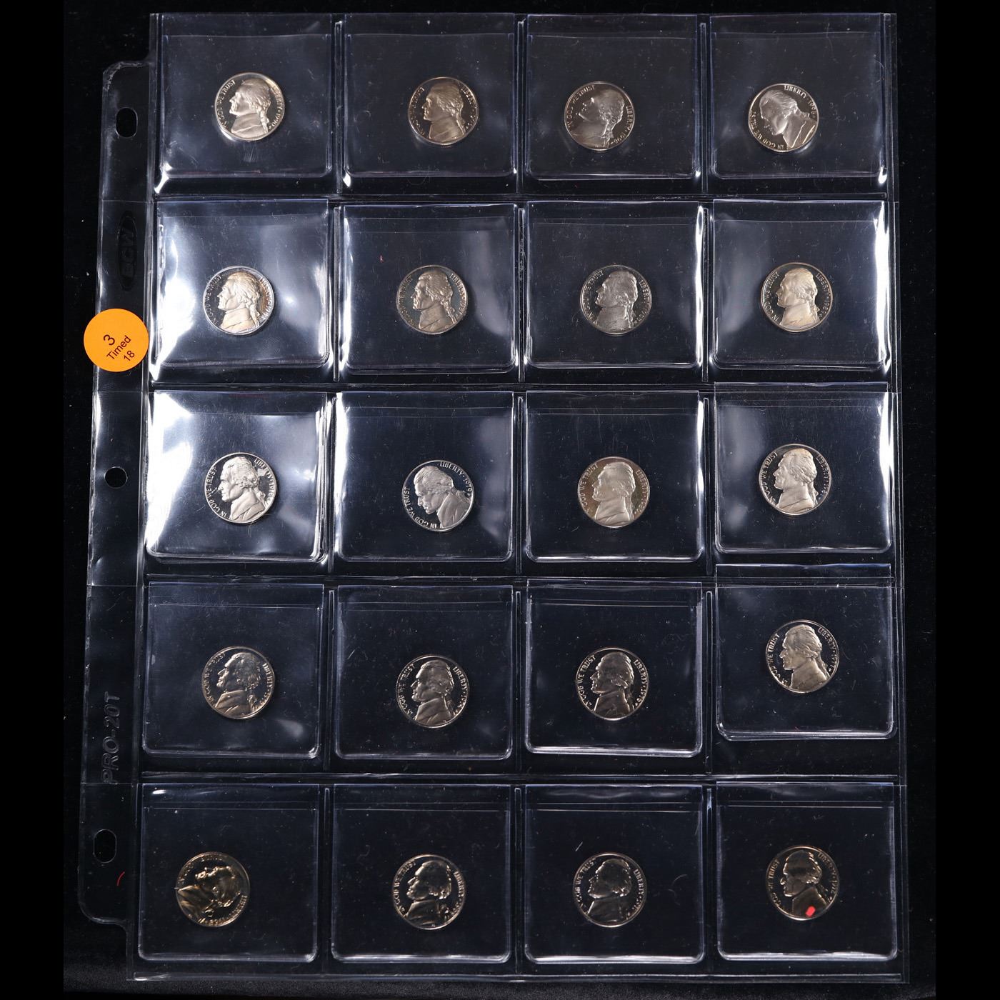Huge Liifetime Collection - Too Many Coins To Auction Individually - This Lot is For One Page of 20 Proof Jefferson Nickels Dates Range From 1971-2006. We have received a huge collection of over 10 thousand US coins in flips, 2x2 holders, and 20 coin pages. We are forced, due to limited lots, to sell this collection in pages of 20 coins. This Page is For 20 Proof Jefferson Nickels. Trends 1987-s pr69 DCAM $15, 1980-s pr69 DCAM $10, 2006-s pr69 DCAM $15, 1985-s pr69 DCAM $15, 1972-s pr69 DCAM $36, 2002-s pr69 DCAM $15, 1971-s pr69 DCAM $200, 2006-s pr69 DCAM $15, 1981-s pr69 DCAM $20, 1983-s pr69 DCAM $15, 1992-s pr69 DCAM $15, 1992-s pr69 DCAM $15, 1980-s pr69 DCAM $10, 1980-s pr69 DCAM $10, 2001-s pr69 DCAM $15, 1981-s pr69 DCAM $20, 1993-s pr69 DCAM $15, 1985-s pr69 DCAM $15, 1991-s pr69 DCAM $15, 1980-s pr69 DCAM $10. We estimate the value of each page to meet or exceed $200 in value! Good luck and happy hunting.