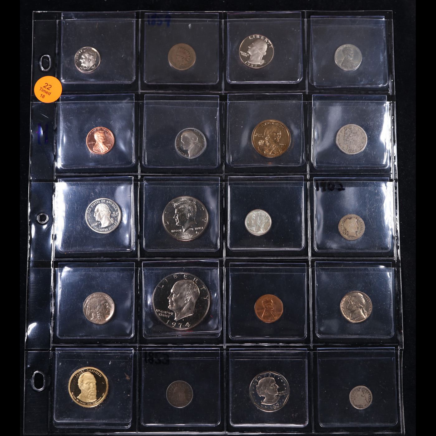 Huge Liifetime Collection - Too Many Coins To Auction Individually - This Lot is For One Page of 20 Coins - All US, No Foreign WOW! High Value. We have received a huge collection of over 10 thousand US coins in flips, 2x2 holders, and 20 coin pages. We are forced, due to limited lots, to sell this collection in pages of 20 coins. All of the pages include Silver Coins. Most contain Indian Cents, Proof Coins, Barber Coinage, Bust Coinage, Lincoln Cents, Flying Eagles, Jefferson Nickels, Roosevelt Dimes, Buffalo Nickels, Eisenhower Dollars, Kennedy Halves, Large Cents including some Draped Bust Large Cents, Mercury Dimes, and Liberty V Nickels. These pages could not be reviewed by anyone in our office due to time constraints. We estimate the value of each page to meet or exceed $200 in value! Good luck and happy hunting.