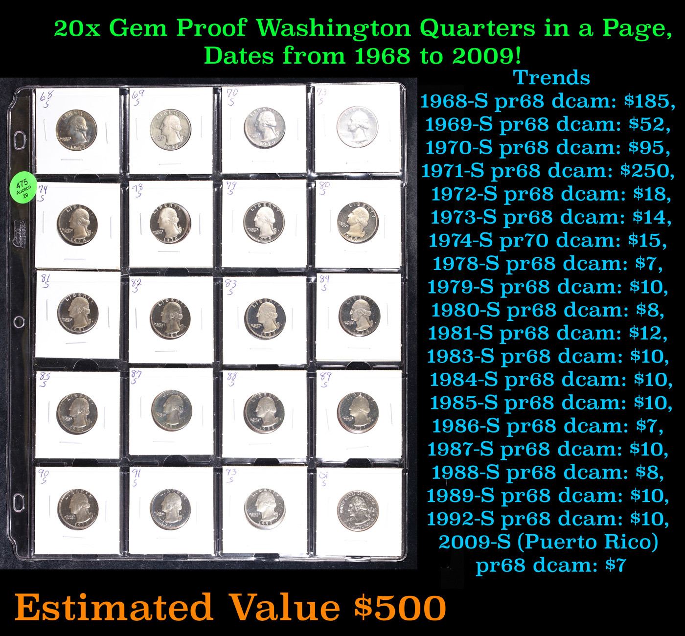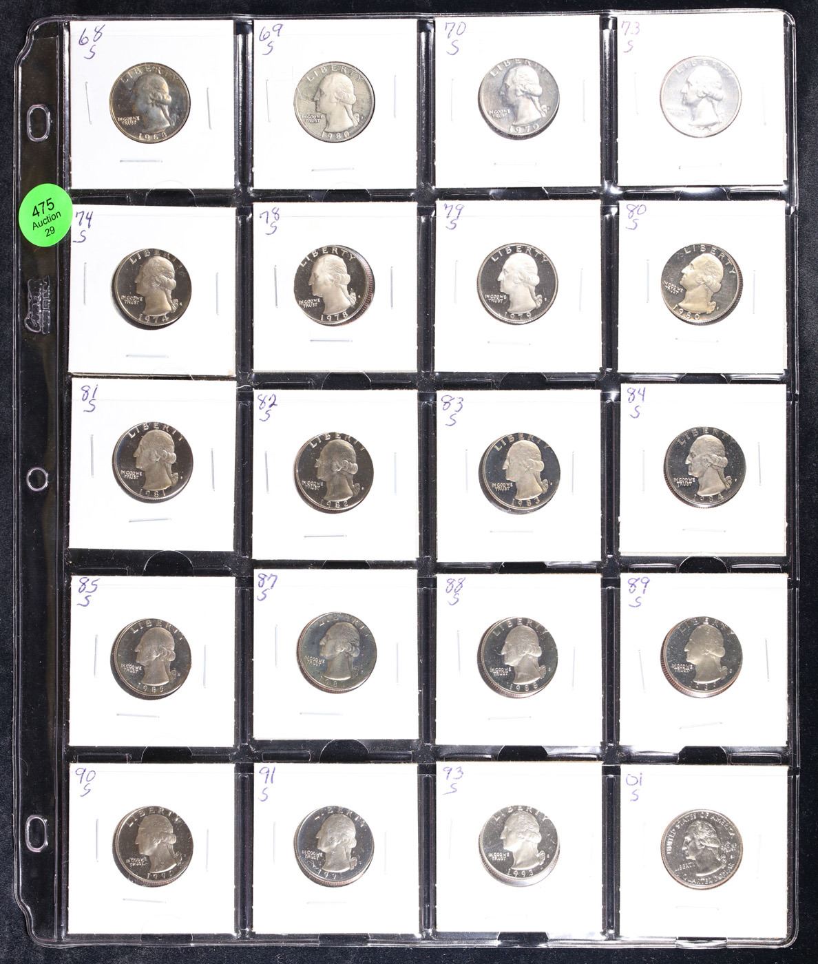 Huge Liifetime Collection - Too Many Coins To Auction Individually - This Lot is For One Page of 20 Proof Washington Quarters Dates Range From 1982-2006.