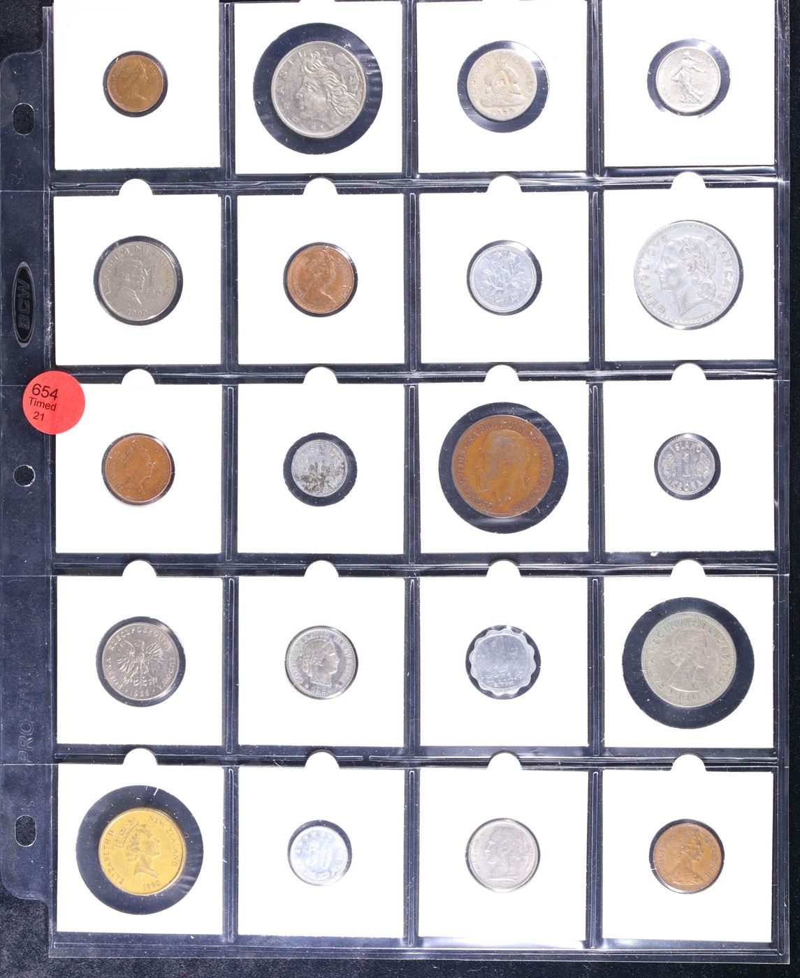 Huge Liifetime Collection - Too Many Coins To Auction Individually - This Lot is For One Page of 20 Foreign Coins. We have received a huge collection of over 10 thousand US coins in flips, 2x2 holders, and 20 coin pages. We are forced, due to limited lots, to sell this collection in pages of 20 coins. All of the pages include Silver Coins. Most contain Indian Cents, Proof Coins, Barber Coinage, Bust Coinage, Lincoln Cents, Flying Eagles, Jefferson Nickels, Roosevelt Dimes, Buffalo Nickels, Eisenhower Dollars, Kennedy Halves, Large Cents including some Draped Bust Large Cents, Mercury Dimes, and Liberty V Nickels. These pages could not be reviewed by anyone in our office due to time constraints. We estimate the value of each page to meet or exceed $200 in value! Good luck and happy hunting.