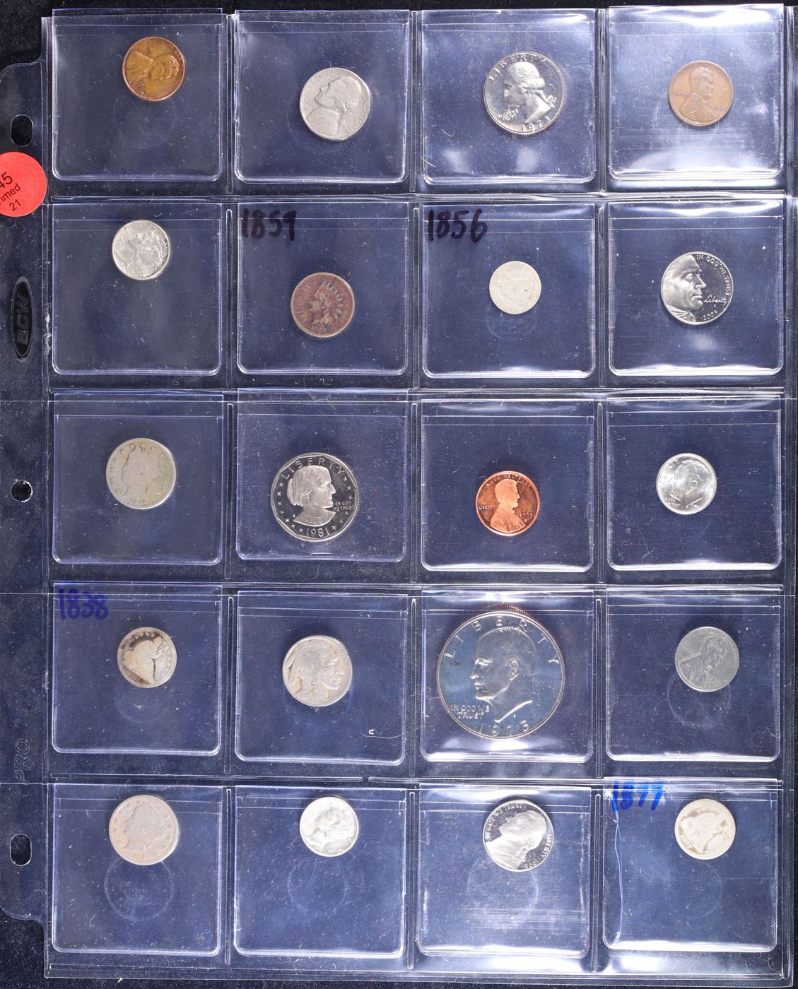 Huge Liifetime Collection - Too Many Coins To Auction Individually - This Lot is For One Page of 20 Coins - All US, No Foreign WOW!. We have received a huge collection of over 10 thousand US coins in flips, 2x2 holders, and 20 coin pages. We are forced, due to limited lots, to sell this collection in pages of 20 coins. All of the pages include Silver Coins. Most contain Indian Cents, Proof Coins, Barber Coinage, Bust Coinage, Lincoln Cents, Flying Eagles, Jefferson Nickels, Roosevelt Dimes, Buffalo Nickels, Eisenhower Dollars, Kennedy Halves, Large Cents including some Draped Bust Large Cents, Mercury Dimes, and Liberty V Nickels. These pages could not be reviewed by anyone in our office due to time constraints. We estimate the value of each page to meet or exceed $200 in value! Good luck and happy hunting.
