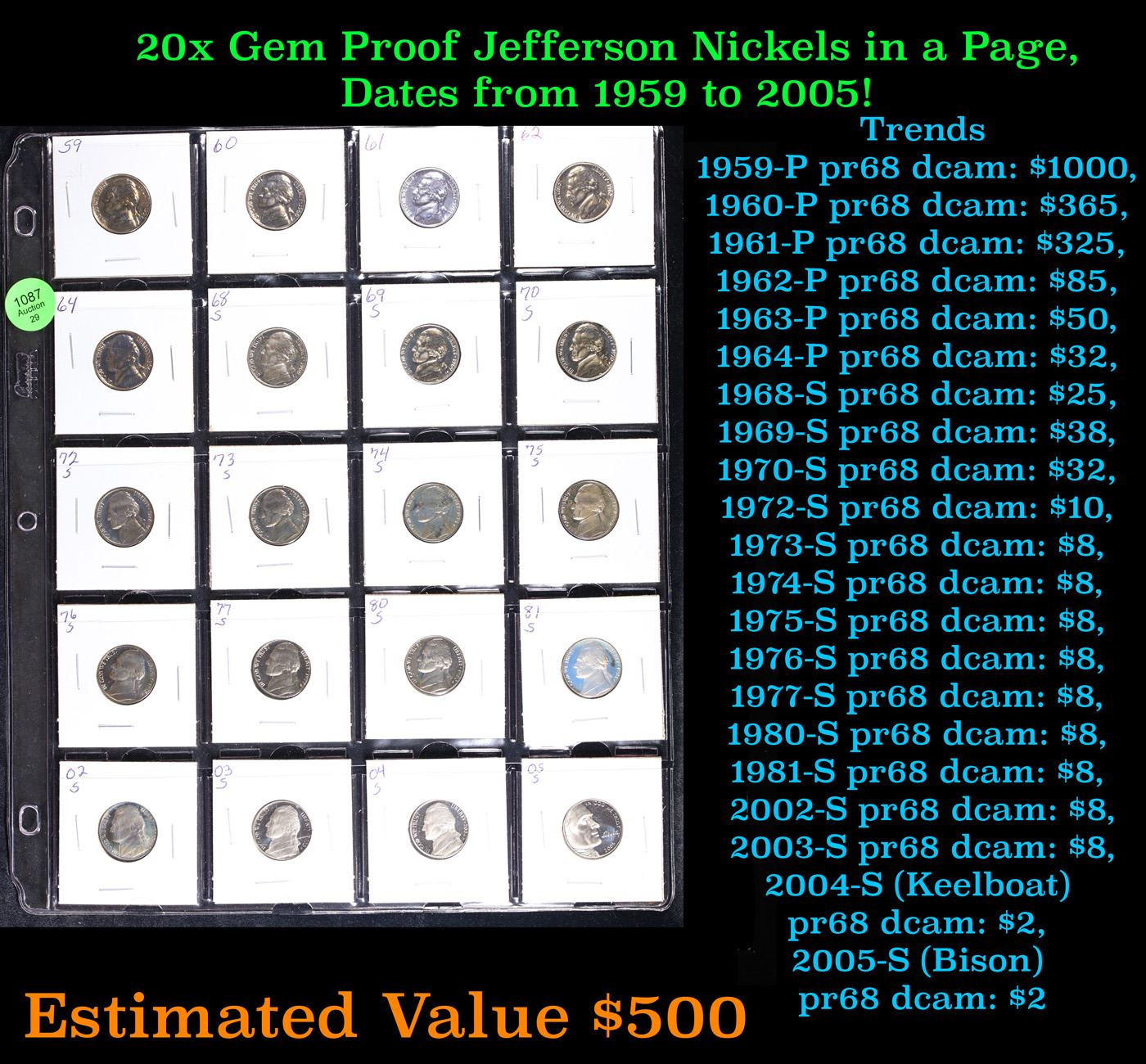 Huge Liifetime Collection - Too Many Coins To Auction Individually - This Lot is For One Page of 20 Proof Jefferson Nickels Dates Range From 1971-2006.