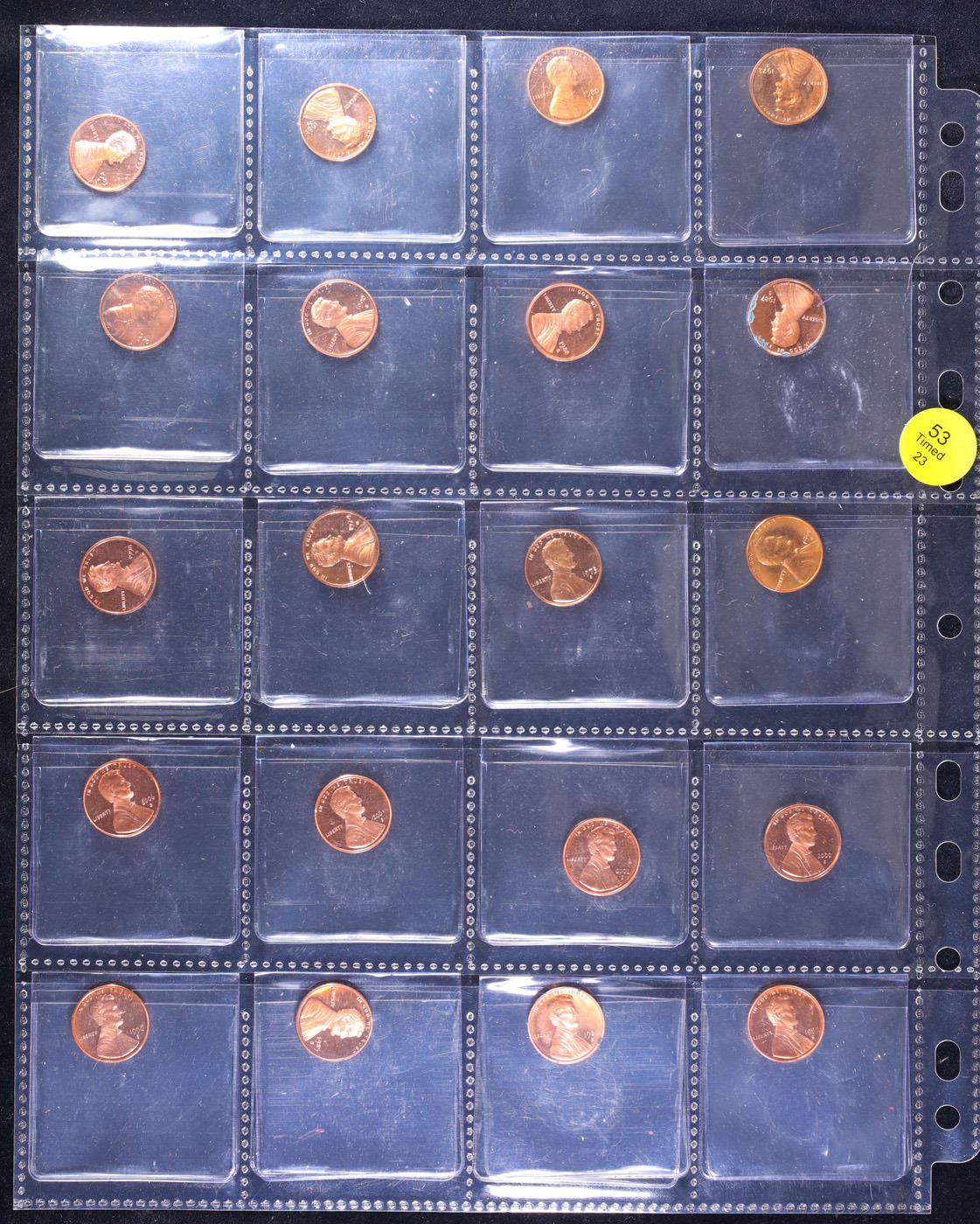 Huge Liifetime Collection - Too Many Coins To Auction Individually - This Lot is For One Page of 20 Proof Lincoln Cents Dates Range From 1970-2006. We have received a huge collection of over 10 thousand US coins in flips, 2x2 holders, and 20 coin pages. We are forced, due to limited lots, to sell this collection in pages of 20 coins. This Page is For 20 Proof Lincoln Cents. Trends 1983-s pr70 DCAM $34, 1981-s pr69 DCAM $15 1980-s pr69 DCAM $15, 1972-s pr69 $400, 1969-s pr69 DCAM $625, 1990-s pr69 DCAM $14, 1989-s pr69 DCAM $14, 1987-s pr69 DCAM $14, 1998-s pr69 DCAM $14, 1974-s pr69 DCAM $32, 1973-s pr69 DCAM $20, 1968-s pr69 DCAM $1,650, 2006-s pr69 DCAM $14, 2003-s pr69 DCAM $14, 2002-s pr69 DCAM $14, 2000-s pr69 DCAM $14, 1996-s pr69 DCAM $14, 1985-s pr69 DCAM $14, 1986-s pr69 DCAM $14, 1999-s pr69 DCAM $14. We estimate the value of each page to meet or exceed $200 in value! Good luck and happy hunting.