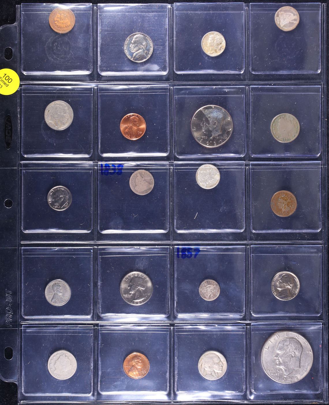 Huge Liifetime Collection - Too Many Coins To Auction Individually - This Lot is For One Page of 20 Coins - All US, No Foreign WOW!. We have received a huge collection of over 10 thousand US coins in flips, 2x2 holders, and 20 coin pages. We are forced, due to limited lots, to sell this collection in pages of 20 coins. All of the pages include Silver Coins. Most contain Indian Cents, Proof Coins, Barber Coinage, Bust Coinage, Lincoln Cents, Flying Eagles, Jefferson Nickels, Roosevelt Dimes, Buffalo Nickels, Eisenhower Dollars, Kennedy Halves, Large Cents including some Draped Bust Large Cents, Mercury Dimes, and Liberty V Nickels. These pages could not be reviewed by anyone in our office due to time constraints. We estimate the value of each page to meet or exceed $200 in value! Good luck and happy hunting.