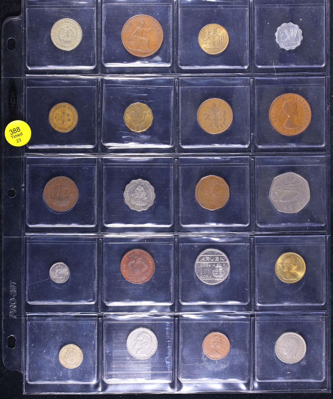 Huge Liifetime Collection - Too Many Coins To Auction Individually - This Lot is For One Page of 20 Foreign Coins. We have received a huge collection of over 10 thousand US coins in flips, 2x2 holders, and 20 coin pages. We are forced, due to limited lots, to sell this collection in pages of 20 coins. All of the pages include Silver Coins. Most contain Indian Cents, Proof Coins, Barber Coinage, Bust Coinage, Lincoln Cents, Flying Eagles, Jefferson Nickels, Roosevelt Dimes, Buffalo Nickels, Eisenhower Dollars, Kennedy Halves, Large Cents including some Draped Bust Large Cents, Mercury Dimes, and Liberty V Nickels. These pages could not be reviewed by anyone in our office due to time constraints. We estimate the value of each page to meet or exceed $200 in value! Good luck and happy hunting.