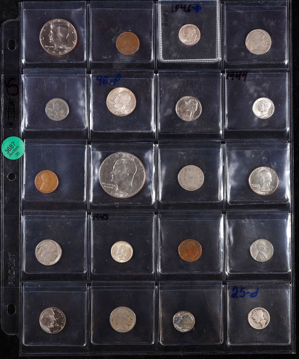 Huge Liifetime Collection - Too Many Coins To Auction Individually - This Lot is For One Page of 20 Coins - All US, No Foreign WOW!. We have received a huge collection of over 10 thousand US coins in flips, 2x2 holders, and 20 coin pages. We are forced, due to limited lots, to sell this collection in pages of 20 coins. All of the pages include Silver Coins. Most contain Indian Cents, Proof Coins, Barber Coinage, Bust Coinage, Lincoln Cents, Flying Eagles, Jefferson Nickels, Roosevelt Dimes, Buffalo Nickels, Eisenhower Dollars, Kennedy Halves, Large Cents including some Draped Bust Large Cents, Mercury Dimes, and Liberty V Nickels. These pages could not be reviewed by anyone in our office due to time constraints. We estimate the value of each page to meet or exceed $200 in value! Good luck and happy hunting.