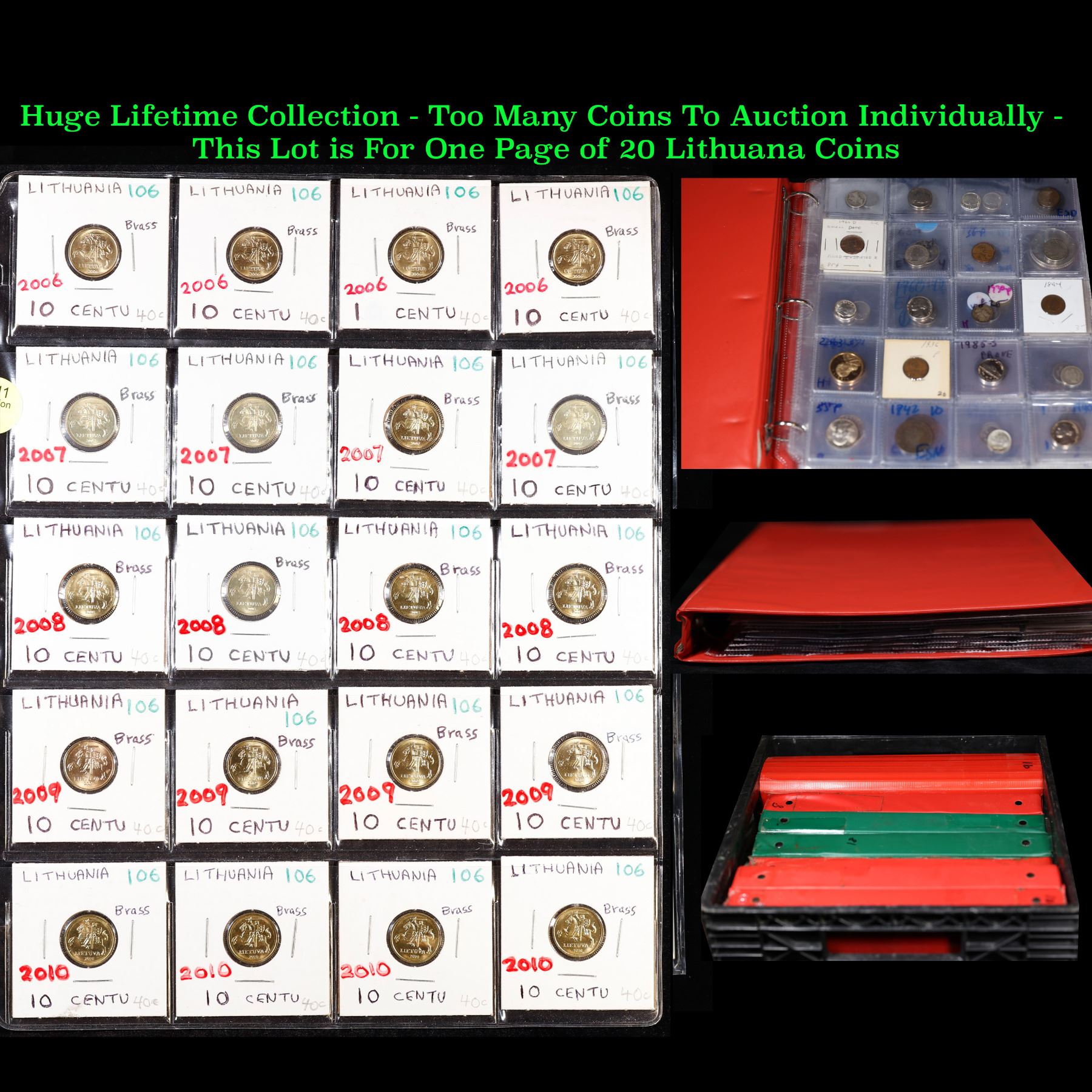 Huge Liifetime Collection - Too Many Coins To Auction Individually - This Lot is For One Page of 20 Lithuania Coins. We have received a huge collection of over 10 thousand US coins in flips, 2x2 holders, and 20 coin pages. We are forced, due to limited lots, to sell this collection in pages of 20 coins. All of the pages include Silver Coins. Most contain Indian Cents, Proof Coins, Barber Coinage, Bust Coinage, Lincoln Cents, Flying Eagles, Jefferson Nickels, Roosevelt Dimes, Buffalo Nickels, Eisenhower Dollars, Kennedy Halves, Large Cents including some Draped Bust Large Cents, Mercury Dimes, and Liberty V Nickels. These pages could not be reviewed by anyone in our office due to time constraints. We estimate the value of each page to meet or exceed $200 in value! Good luck and happy hunting.