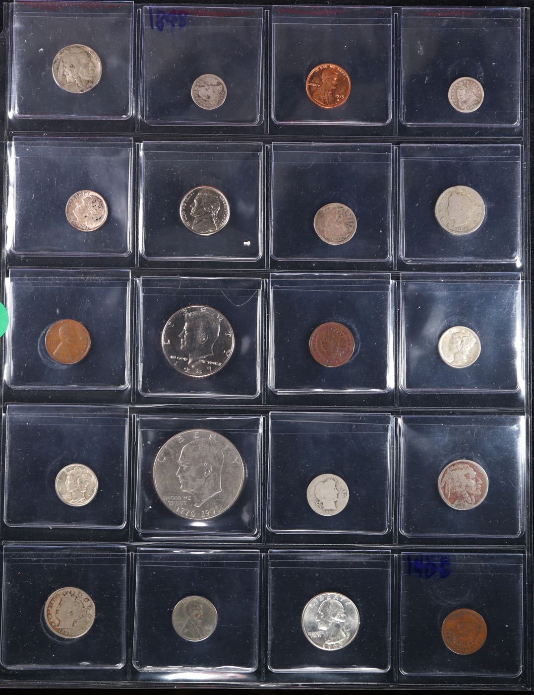 Huge Liifetime Collection - Too Many Coins To Auction Individually - This Lot is For One Page of 20 Coins - All US, No Foreign WOW!. We have received a huge collection of over 10 thousand US coins in flips, 2x2 holders, and 20 coin pages. We are forced, due to limited lots, to sell this collection in pages of 20 coins. All of the pages include Silver Coins. Most contain Indian Cents, Proof Coins, Barber Coinage, Bust Coinage, Lincoln Cents, Flying Eagles, Jefferson Nickels, Roosevelt Dimes, Buffalo Nickels, Eisenhower Dollars, Kennedy Halves, Large Cents including some Draped Bust Large Cents, Mercury Dimes, and Liberty V Nickels. These pages could not be reviewed by anyone in our office due to time constraints. We estimate the value of each page to meet or exceed $200 in value! Good luck and happy hunting.