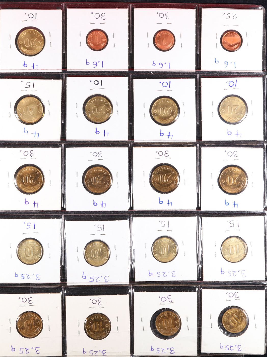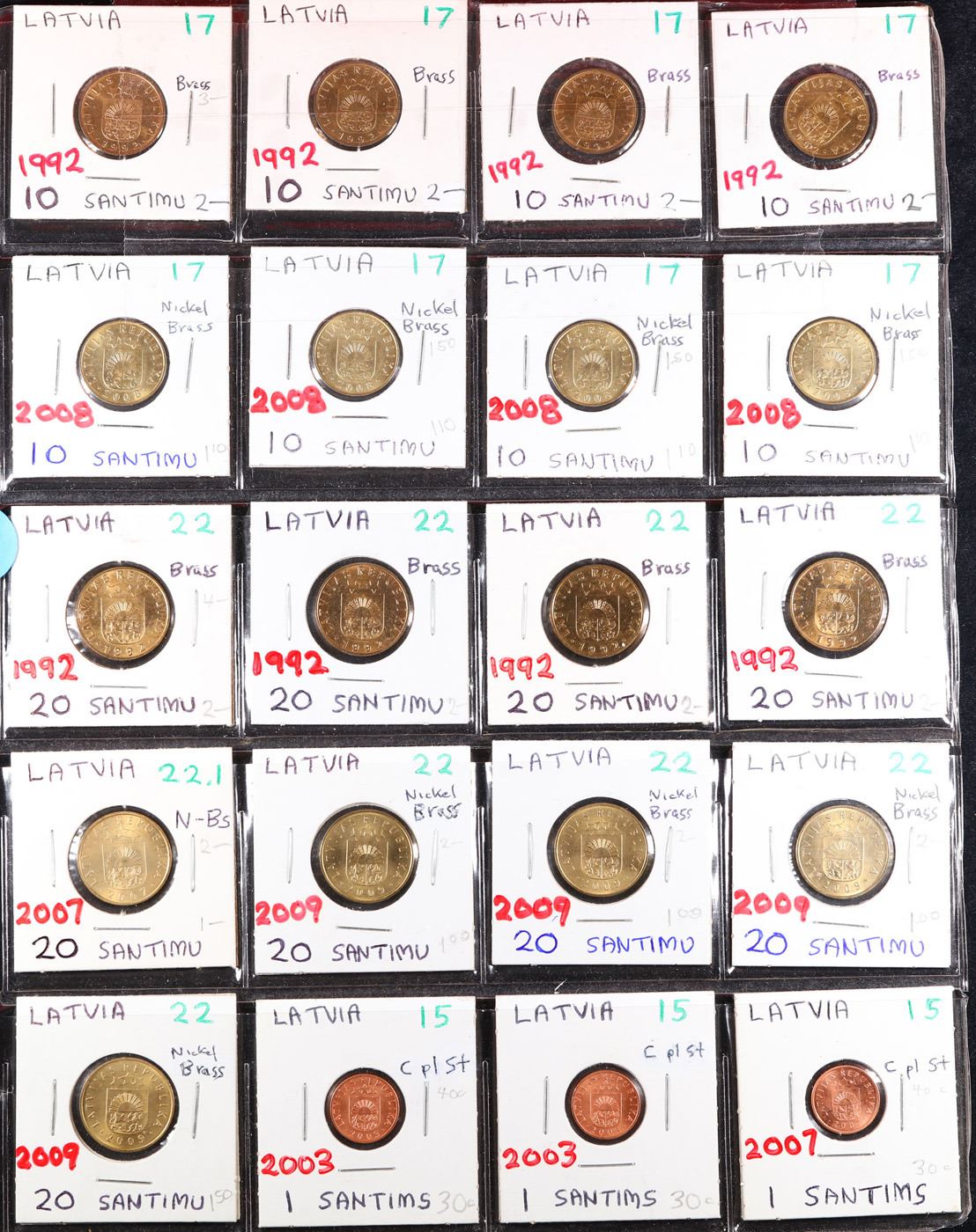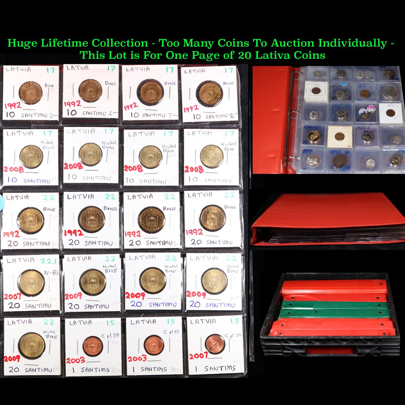 Huge Liifetime Collection - Too Many Coins To Auction Individually - This Lot is For One Page of 20 Latvia Coins. We have received a huge collection of over 10 thousand US coins in flips, 2x2 holders, and 20 coin pages. We are forced, due to limited lots, to sell this collection in pages of 20 coins. All of the pages include Silver Coins. Most contain Indian Cents, Proof Coins, Barber Coinage, Bust Coinage, Lincoln Cents, Flying Eagles, Jefferson Nickels, Roosevelt Dimes, Buffalo Nickels, Eisenhower Dollars, Kennedy Halves, Large Cents including some Draped Bust Large Cents, Mercury Dimes, and Liberty V Nickels. These pages could not be reviewed by anyone in our office due to time constraints. We estimate the value of each page to meet or exceed $200 in value! Good luck and happy hunting.