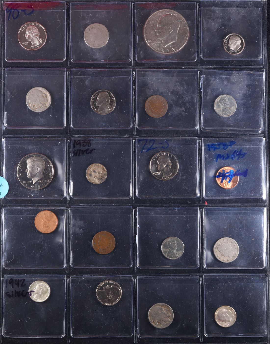 Huge Liifetime Collection - Too Many Coins To Auction Individually - This Lot is For One Page of 20 Coins - All US, No Foreign WOW!. We have received a huge collection of over 10 thousand US coins in flips, 2x2 holders, and 20 coin pages. We are forced, due to limited lots, to sell this collection in pages of 20 coins. All of the pages include Silver Coins. Most contain Indian Cents, Proof Coins, Barber Coinage, Bust Coinage, Lincoln Cents, Flying Eagles, Jefferson Nickels, Roosevelt Dimes, Buffalo Nickels, Eisenhower Dollars, Kennedy Halves, Large Cents including some Draped Bust Large Cents, Mercury Dimes, and Liberty V Nickels. These pages could not be reviewed by anyone in our office due to time constraints. We estimate the value of each page to meet or exceed $200 in value! Good luck and happy hunting.