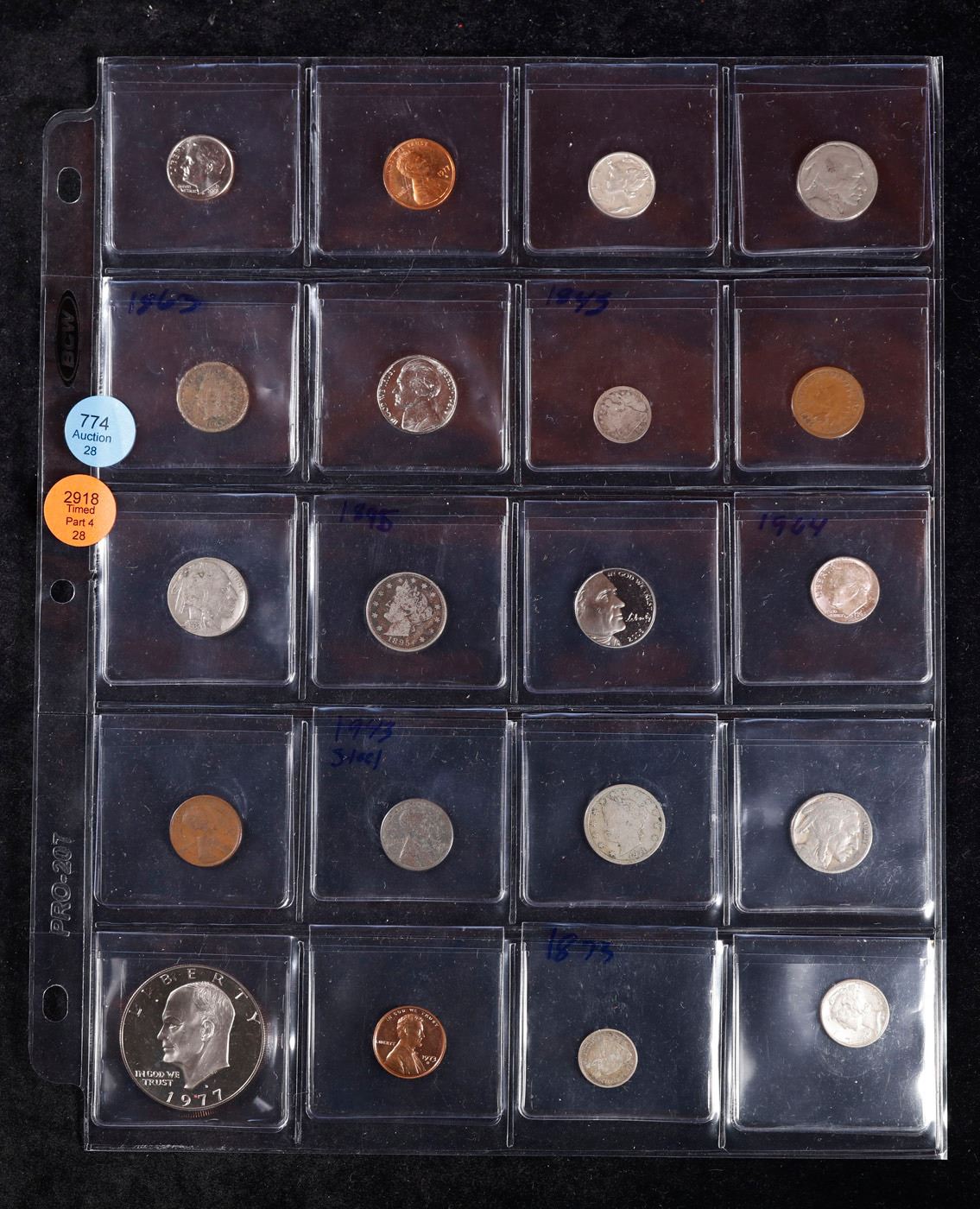 Huge Liifetime Collection - Too Many Coins To Auction Individually - This Lot is For One Page of 20 Coins - All US, No Foreign WOW!. We have received a huge collection of over 10 thousand US coins in flips, 2x2 holders, and 20 coin pages. We are forced, due to limited lots, to sell this collection in pages of 20 coins. All of the pages include Silver Coins. Most contain Indian Cents, Proof Coins, Barber Coinage, Bust Coinage, Lincoln Cents, Flying Eagles, Jefferson Nickels, Roosevelt Dimes, Buffalo Nickels, Eisenhower Dollars, Kennedy Halves, Large Cents including some Draped Bust Large Cents, Mercury Dimes, and Liberty V Nickels. These pages could not be reviewed by anyone in our office due to time constraints. We estimate the value of each page to meet or exceed $200 in value! Good luck and happy hunting.