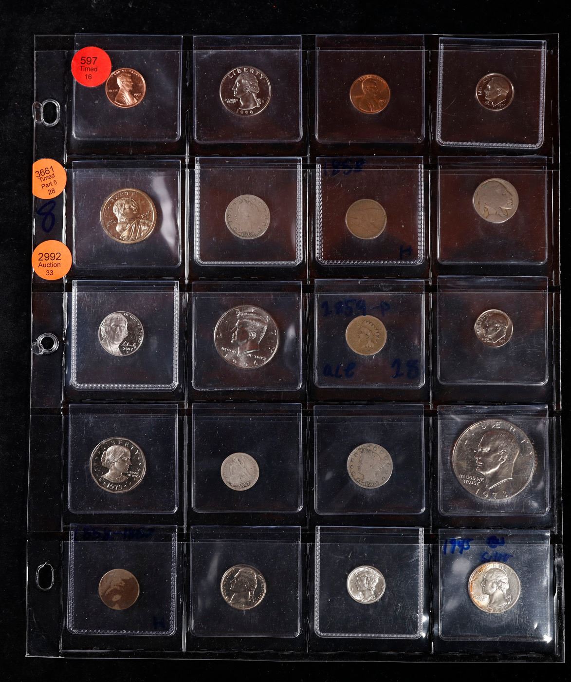 Huge Liifetime Collection - Too Many Coins To Auction Individually - This Lot is For One Page of 20 Coins - All US, No Foreign WOW!. We have received a huge collection of over 10 thousand US coins in flips, 2x2 holders, and 20 coin pages. We are forced, due to limited lots, to sell this collection in pages of 20 coins. All of the pages include Silver Coins. Most contain Indian Cents, Proof Coins, Barber Coinage, Bust Coinage, Lincoln Cents, Flying Eagles, Jefferson Nickels, Roosevelt Dimes, Buffalo Nickels, Eisenhower Dollars, Kennedy Halves, Large Cents including some Draped Bust Large Cents, Mercury Dimes, and Liberty V Nickels. These pages could not be reviewed by anyone in our office due to time constraints. We estimate the value of each page to meet or exceed $200 in value! Good luck and happy hunting.