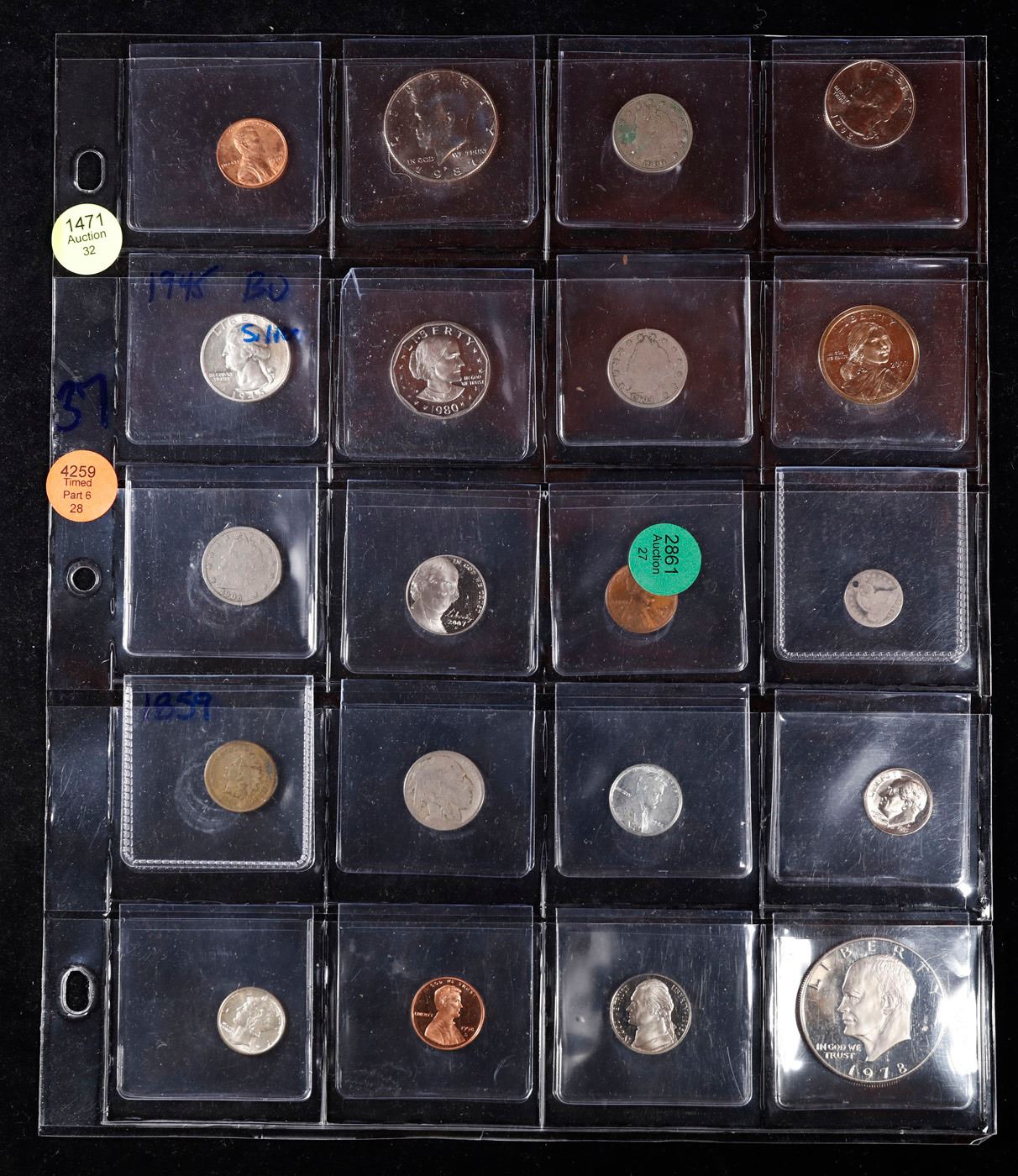 Huge Liifetime Collection - Too Many Coins To Auction Individually - This Lot is For One Page of 20 Coins - All US, No Foreign WOW!. We have received a huge collection of over 10 thousand US coins in flips, 2x2 holders, and 20 coin pages. We are forced, due to limited lots, to sell this collection in pages of 20 coins. All of the pages include Silver Coins. Most contain Indian Cents, Proof Coins, Barber Coinage, Bust Coinage, Lincoln Cents, Flying Eagles, Jefferson Nickels, Roosevelt Dimes, Buffalo Nickels, Eisenhower Dollars, Kennedy Halves, Large Cents including some Draped Bust Large Cents, Mercury Dimes, and Liberty V Nickels. These pages could not be reviewed by anyone in our office due to time constraints. We estimate the value of each page to meet or exceed $200 in value! Good luck and happy hunting.