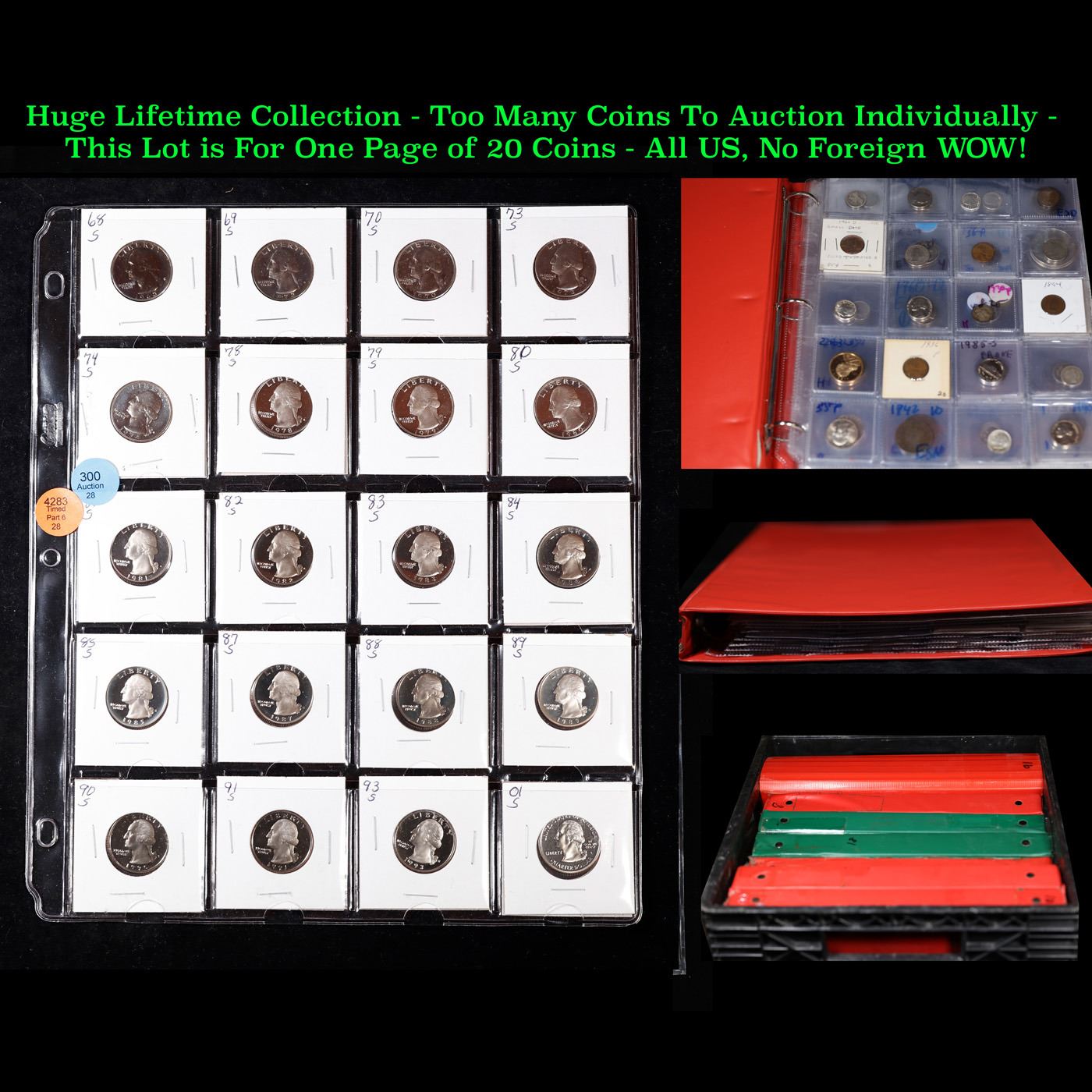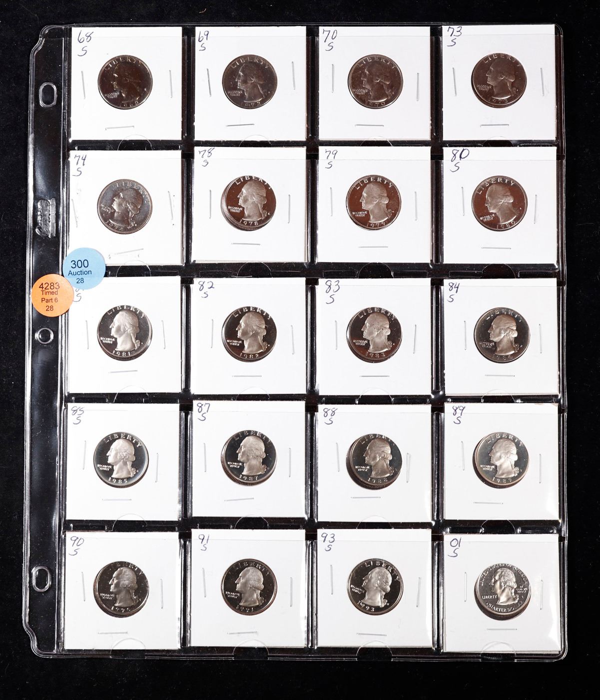 Huge Liifetime Collection - Too Many Coins To Auction Individually - This Lot is For One Page of 20 Proof Washington Quarters Dates Range From 1982-2006. This Lot is For One Page of 20 Proof Washington Quarters Dates Range From 1982-2006. We have received a huge collection of over 10 thousand US coins in flips, 2x2 holders, and 20 coin pages. We are forced, due to limited lots, to sell this collection in pages of 20 coins. This Page is For 20 Proof Washington Quarters Trends 2002-s pr69 DCAM $19 1994-s pr69 DCAM $16, 1982-s pr69 DCAM $15, 2002-s pr69 DCAM $19, 2006-s pr69 DCAM $19, 2003-s pr69 DCAM $19, 2003-s pr69 DCAM $19, 2002-s pr69 DCAM $19, 1993-s pr69 DCAM $16, 1982-s pr69 DCAM $15, 1991-s pr69 DCAM $16, 1982-s pr69 DCAM $15, 1990-s pr69 DCAM $16, 1983-s pr69 DCAM $16, 1985-s pr69 DCAM $16, 1987-s pr69 DCAM $16, 1996-s pr69 DCAM $16, 1993-s pr69 DCAM $16, 1983-s pr69 DCAM $16, 1984-s pr69 DCAM $16. We estimate the value of each page to meet or exceed $200 in value! Good luck and happy hunting.