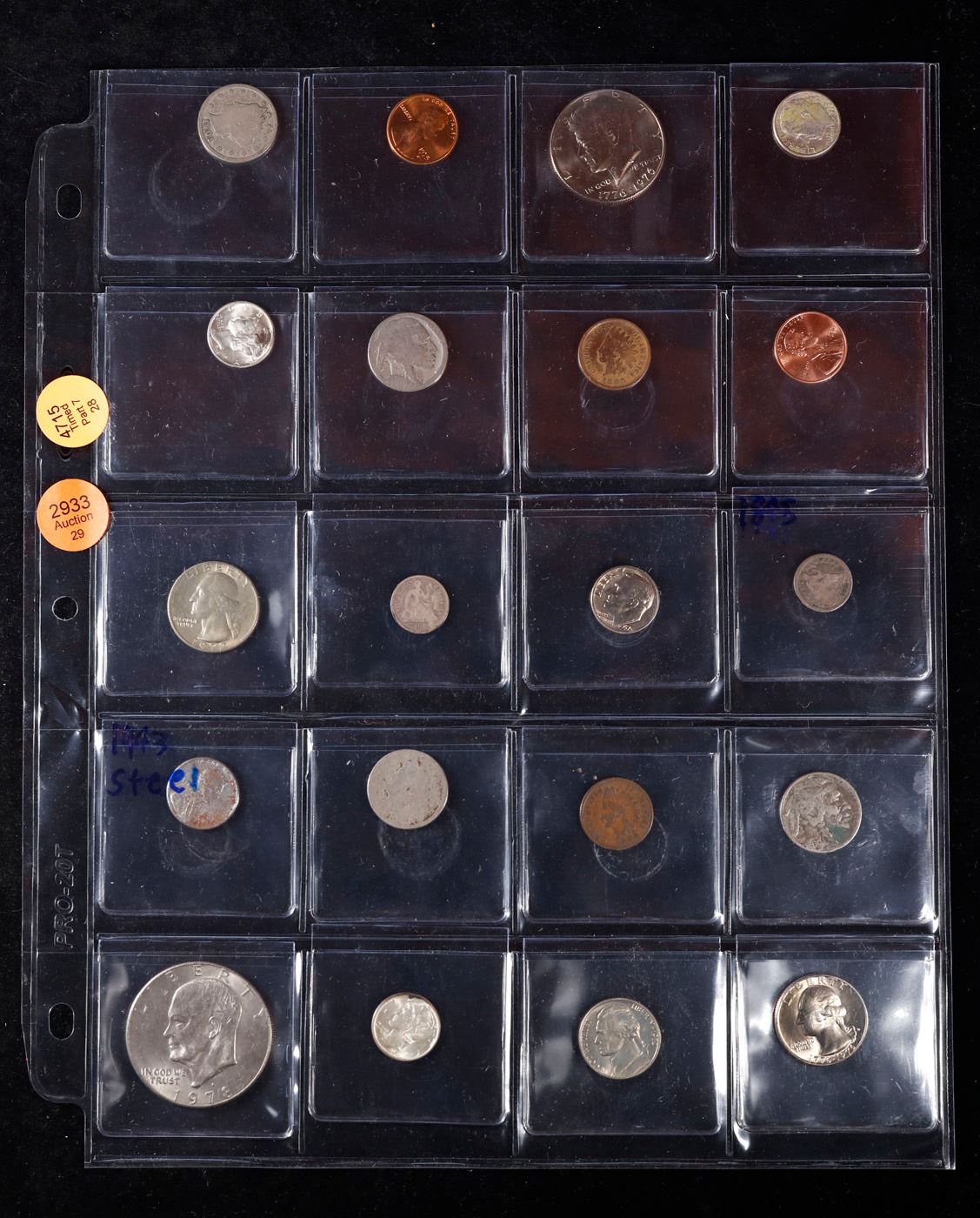 Huge Liifetime Collection - Too Many Coins To Auction Individually - This Lot is For One Page of 20 Coins - All US, No Foreign WOW!. We have received a huge collection of over 10 thousand US coins in flips, 2x2 holders, and 20 coin pages. We are forced, due to limited lots, to sell this collection in pages of 20 coins. All of the pages include Silver Coins. Most contain Indian Cents, Proof Coins, Barber Coinage, Bust Coinage, Lincoln Cents, Flying Eagles, Jefferson Nickels, Roosevelt Dimes, Buffalo Nickels, Eisenhower Dollars, Kennedy Halves, Large Cents including some Draped Bust Large Cents, Mercury Dimes, and Liberty V Nickels. These pages could not be reviewed by anyone in our office due to time constraints. We estimate the value of each page to meet or exceed $200 in value! Good luck and happy hunting.