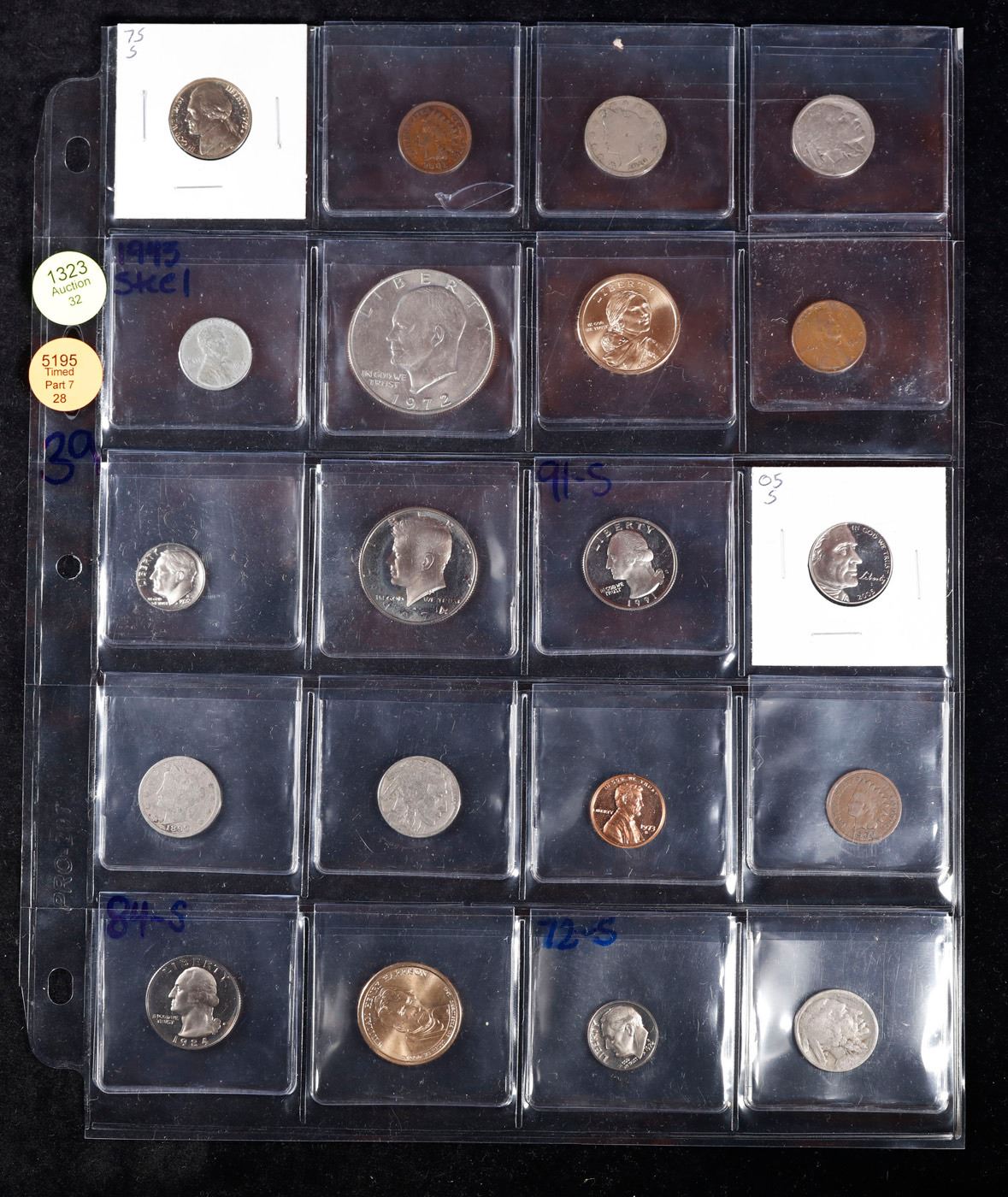 Huge Liifetime Collection - Too Many Coins To Auction Individually - This Lot is For One Page of 20 Coins - All US, No Foreign WOW!. We have received a huge collection of over 10 thousand US coins in flips, 2x2 holders, and 20 coin pages. We are forced, due to limited lots, to sell this collection in pages of 20 coins. All of the pages include Silver Coins. Most contain Indian Cents, Proof Coins, Barber Coinage, Bust Coinage, Lincoln Cents, Flying Eagles, Jefferson Nickels, Roosevelt Dimes, Buffalo Nickels, Eisenhower Dollars, Kennedy Halves, Large Cents including some Draped Bust Large Cents, Mercury Dimes, and Liberty V Nickels. These pages could not be reviewed by anyone in our office due to time constraints. We estimate the value of each page to meet or exceed $200 in value! Good luck and happy hunting.