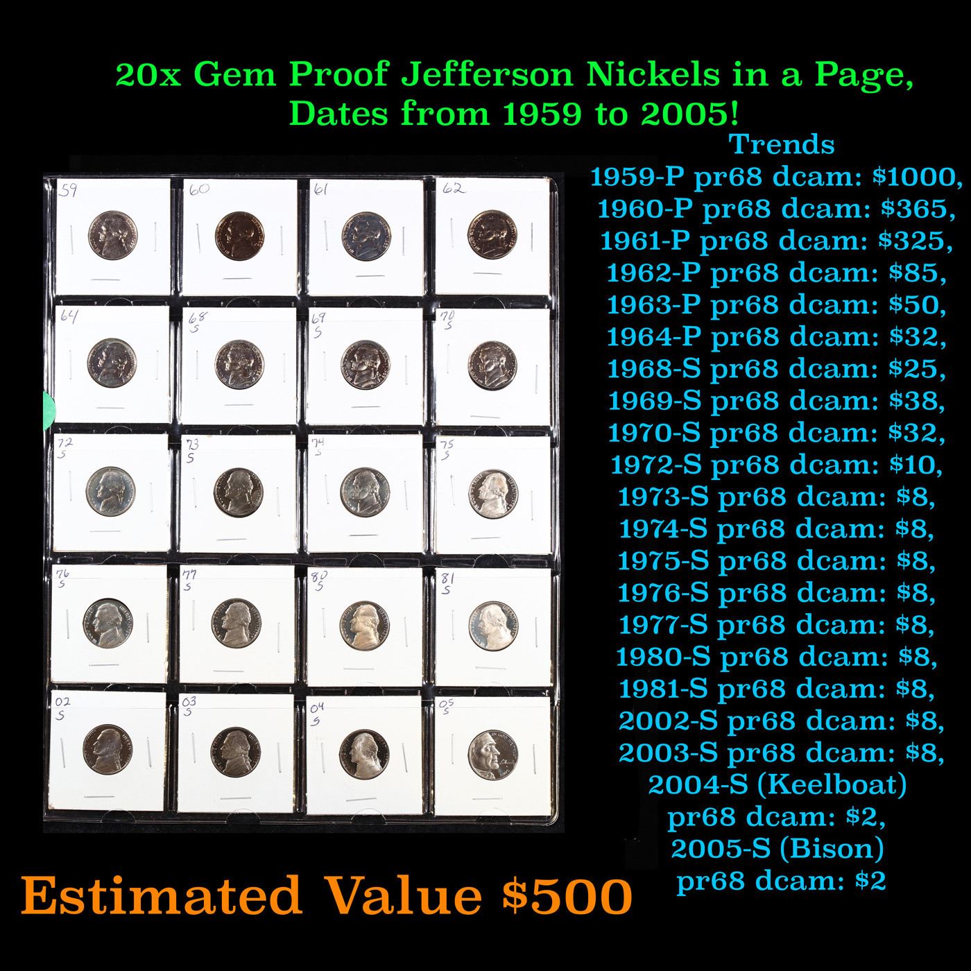 Huge Liifetime Collection - Too Many Coins To Auction Individually - This Lot is For One Page of 20 Coins - All US, No Foreign WOW!. We have received a huge collection of over 10 thousand US coins in flips, 2x2 holders, and 20 coin pages. We are forced, due to limited lots, to sell this collection in pages of 20 coins. All of the pages include Silver Coins. Most contain Indian Cents, Proof Coins, Barber Coinage, Bust Coinage, Lincoln Cents, Flying Eagles, Jefferson Nickels, Roosevelt Dimes, Buffalo Nickels, Eisenhower Dollars, Kennedy Halves, Large Cents including some Draped Bust Large Cents, Mercury Dimes, and Liberty V Nickels. These pages could not be reviewed by anyone in our office due to time constraints. We estimate the value of each page to meet or exceed $200 in value! Good luck and happy hunting.