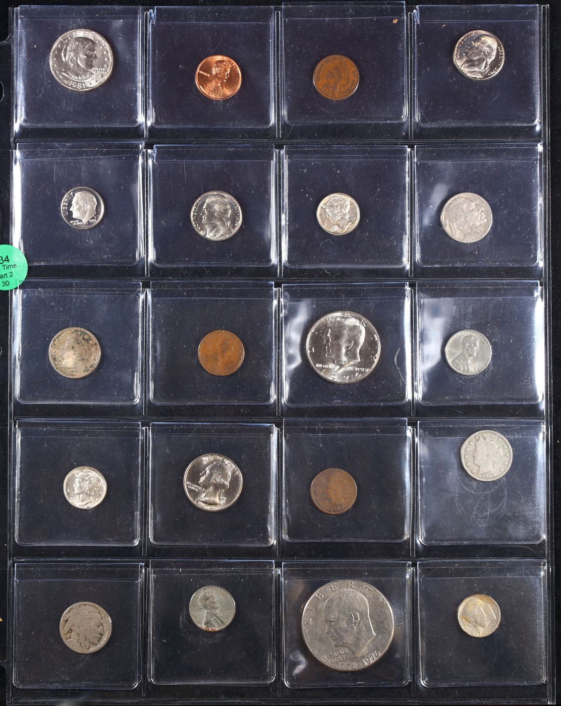 Huge Liifetime Collection - Too Many Coins To Auction Individually - This Lot is For One Page of 20 Coins - All US, No Foreign WOW!. We have received a huge collection of over 10 thousand US coins in flips, 2x2 holders, and 20 coin pages. We are forced, due to limited lots, to sell this collection in pages of 20 coins. All of the pages include Silver Coins. Most contain Indian Cents, Proof Coins, Barber Coinage, Bust Coinage, Lincoln Cents, Flying Eagles, Jefferson Nickels, Roosevelt Dimes, Buffalo Nickels, Eisenhower Dollars, Kennedy Halves, Large Cents including some Draped Bust Large Cents, Mercury Dimes, and Liberty V Nickels. These pages could not be reviewed by anyone in our office due to time constraints. We estimate the value of each page to meet or exceed $200 in value! Good luck and happy hunting.