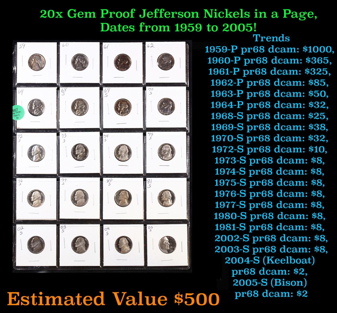 Huge Liifetime Collection - Too Many Coins To Auction Individually - This Lot is For One Page of 20 Coins - All US, No Foreign WOW!. We have received a huge collection of over 10 thousand US coins in flips, 2x2 holders, and 20 coin pages. We are forced, due to limited lots, to sell this collection in pages of 20 coins. All of the pages include Silver Coins. Most contain Indian Cents, Proof Coins, Barber Coinage, Bust Coinage, Lincoln Cents, Flying Eagles, Jefferson Nickels, Roosevelt Dimes, Buffalo Nickels, Eisenhower Dollars, Kennedy Halves, Large Cents including some Draped Bust Large Cents, Mercury Dimes, and Liberty V Nickels. These pages could not be reviewed by anyone in our office due to time constraints. We estimate the value of each page to meet or exceed $200 in value! Good luck and happy hunting.