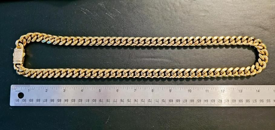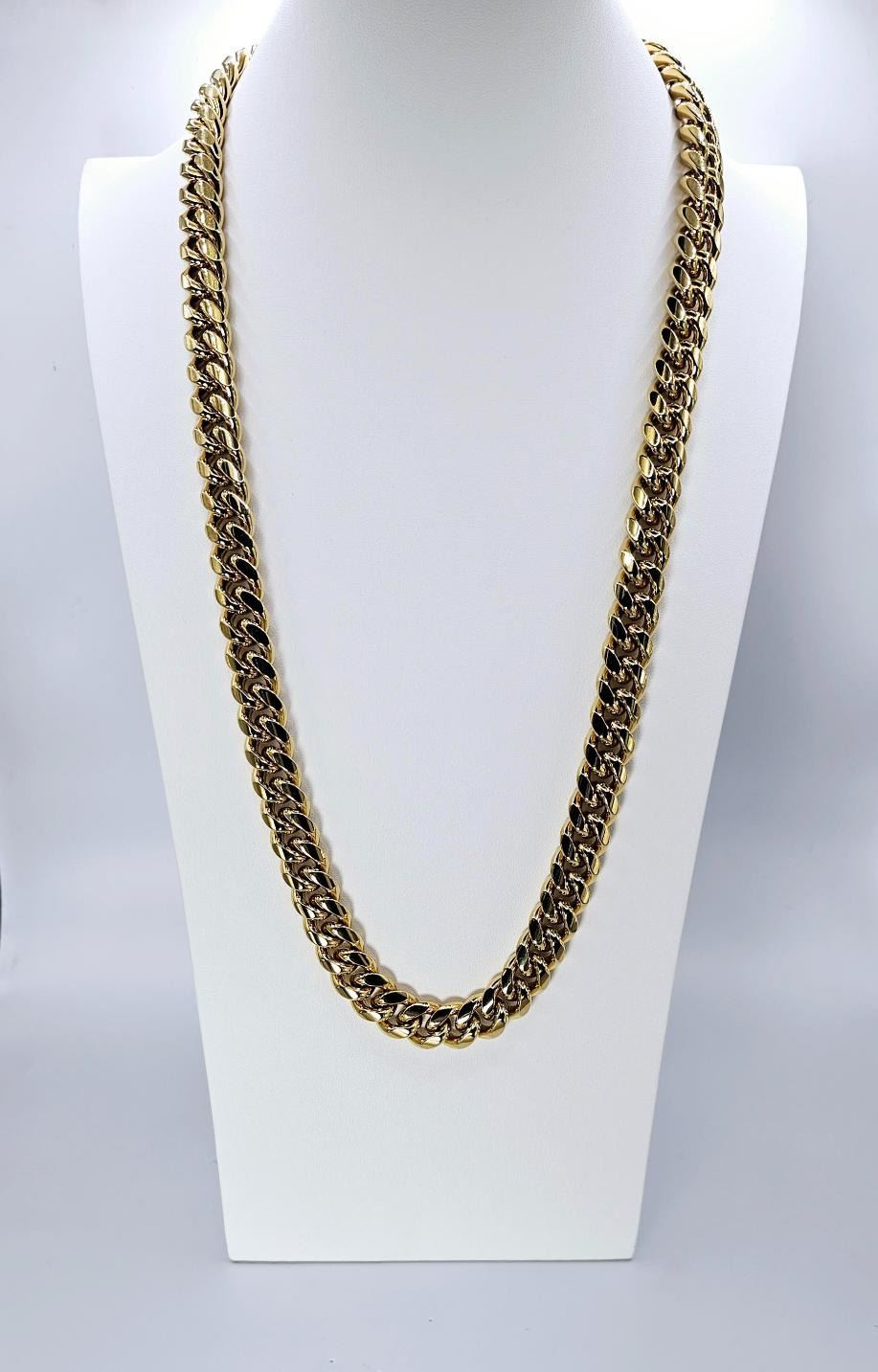 Huge Limited 297.5 Grams MLB 14 Kt Gold Plated Cuban Curb Link Necklace. This High Quality Top Notch Cuban Curb Link Necklace Is Just Like The Pros Wear. It Measures A Healthy 14 mm Wide and is Secured with a Double Safety Clasp. It is 30 inches long in length.