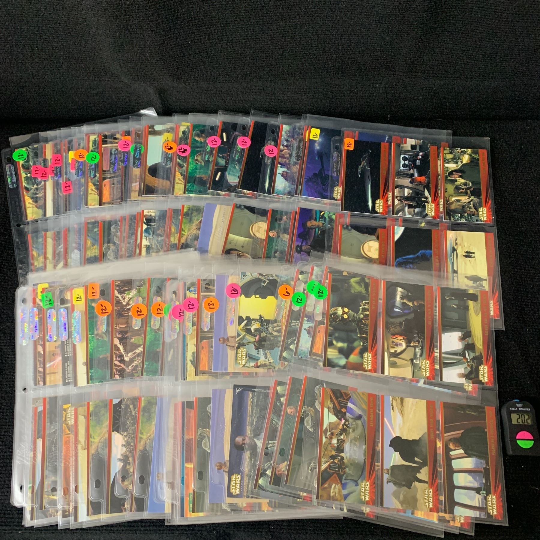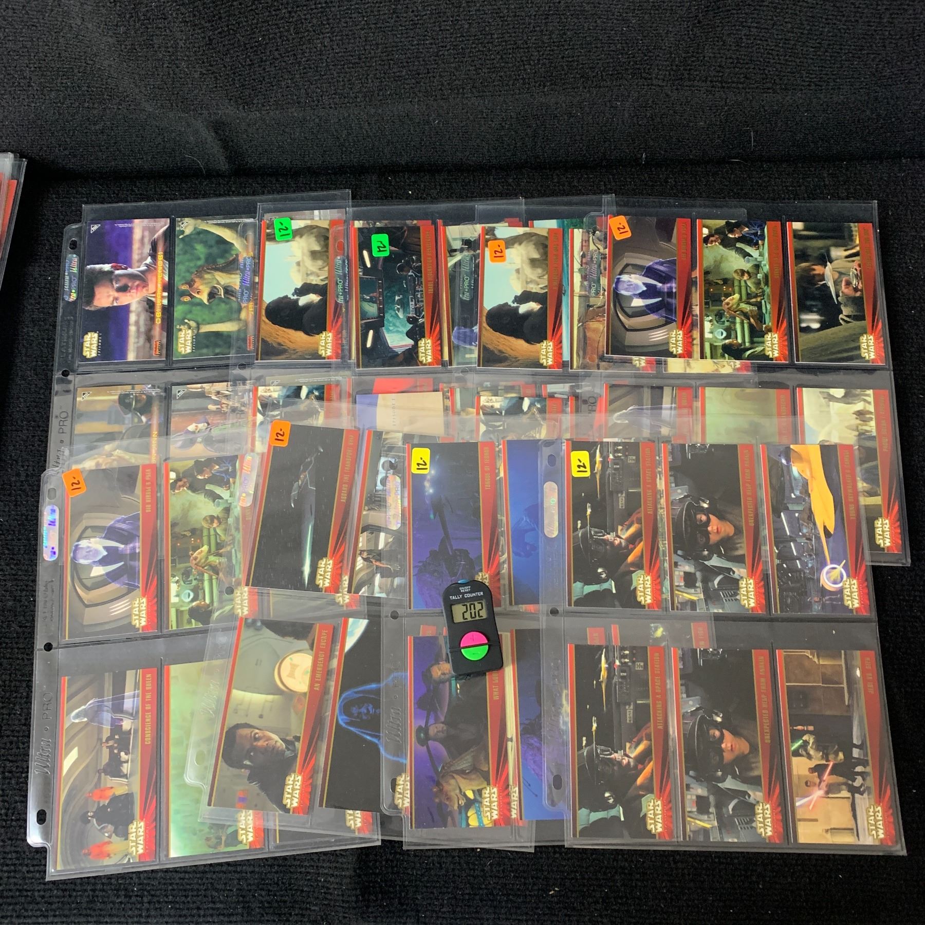 Huge Lot of Lucas Film Star Wars Long Cards. Tons of Pages filled with cards. We are a veteran owned company. Please look at the pictures carefully to determine what you believe the condition of collecitible is. We are currently accepting consignments. Email us a aeronhouse1994@gmail.com or visit our website, www.ahauctionhouse.com.