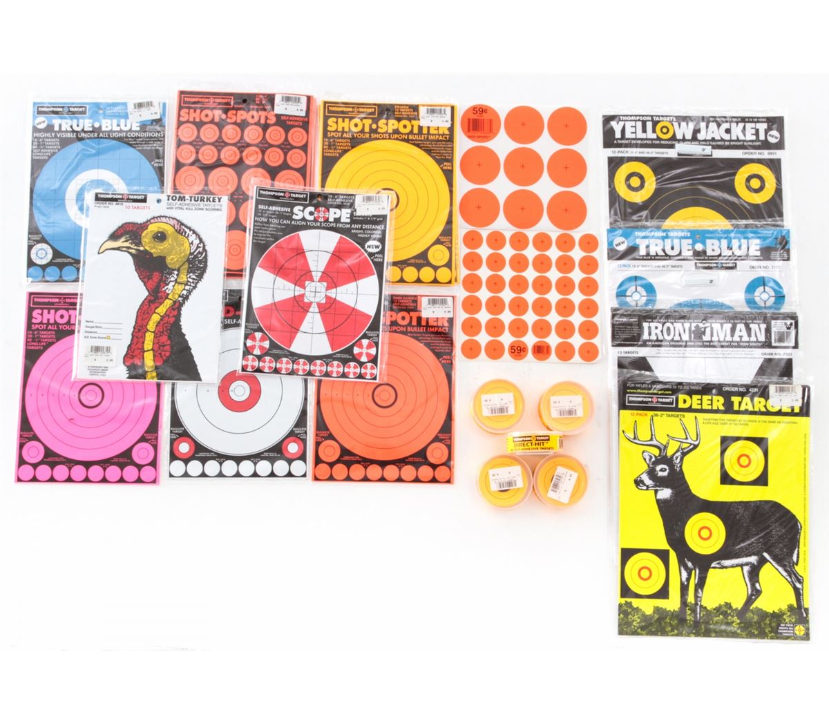 Huge Lot of Yellow Jacket, Red-Fire, Tom-Turkey, Deer and Tru-Blue Targets. 1000s of targets, along with rolls of adhesive targets. All brand new in original packaging. Est.: $200-$300/lot. (Field Time)