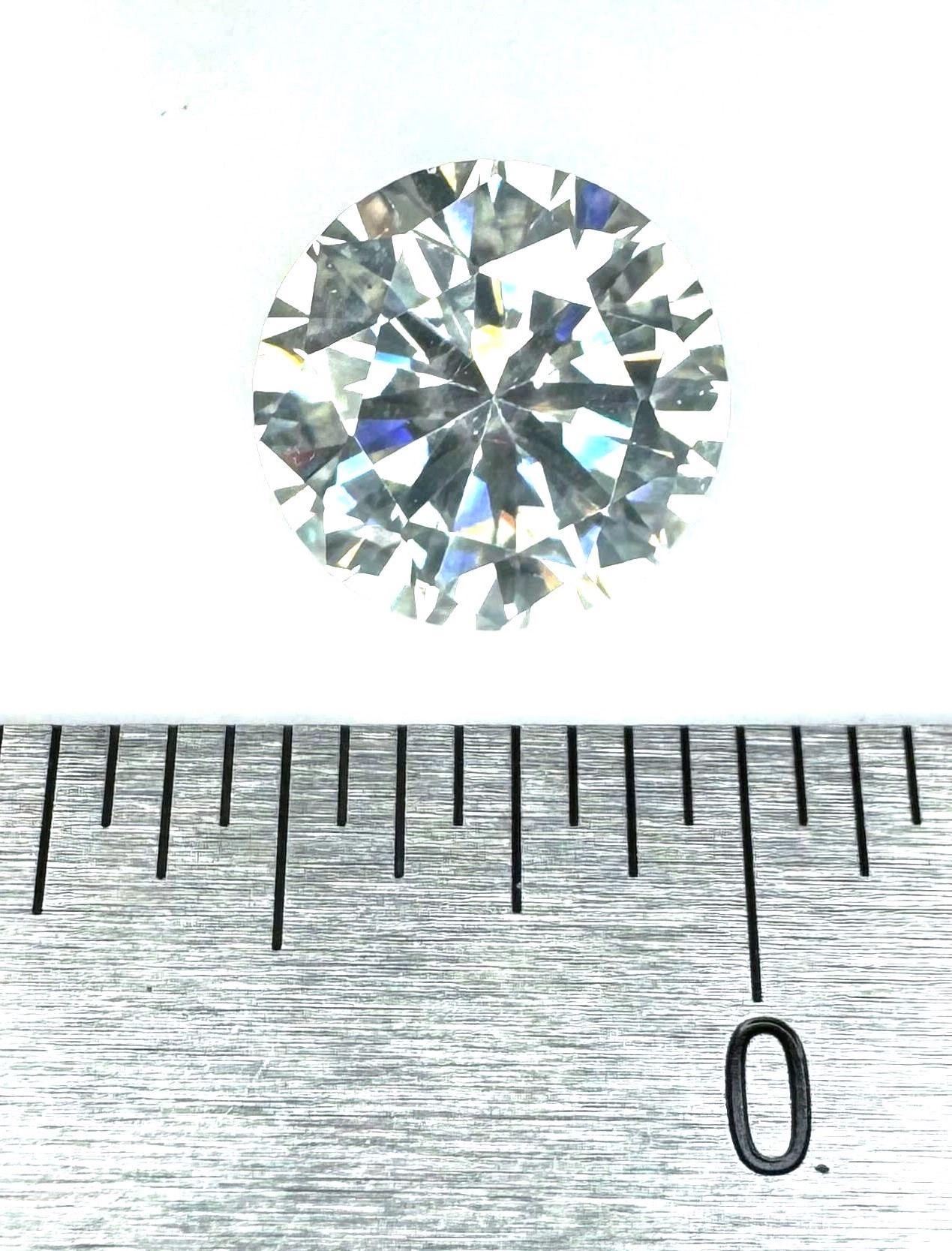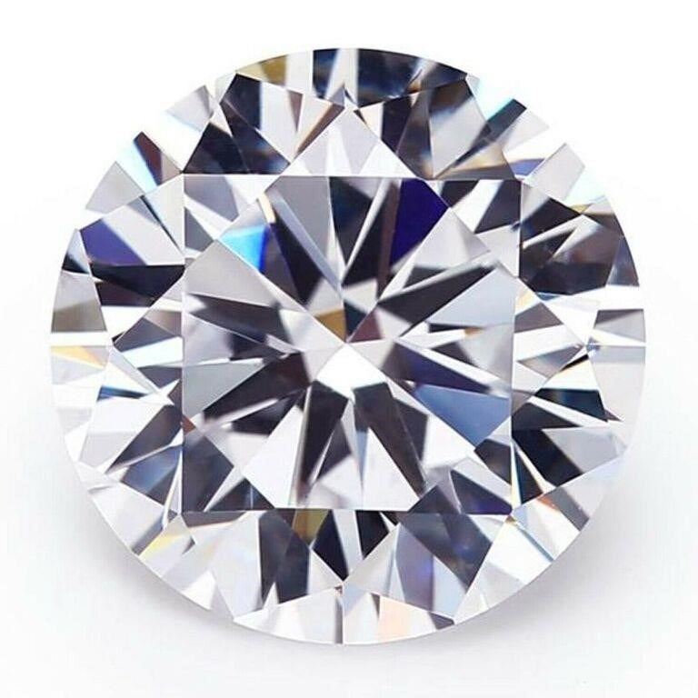 This Huge Rare 11.5 Ct VVs1 Brilliant Round Cut Moissanite Measures 15.30 mm. and is E-F in color. It is near flawless and bursting out with a full spectrum of colors. With a refractive index of 2.65-2.69, this Fire Moissanite exhibits more brilliance and fire than a diamond thanks to a dispersion that is 2.4 times higher than a natural diamond. It is also earth friendly and conflict free. With a 9.25 mohs measurement of hardness this moissanite will test positive for a diamond on almost any diamond tester. This Moissanite is Gorgeous and ready to mount.