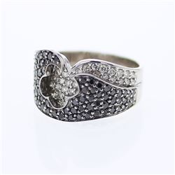 One 14KT White Gold 1.70ctw Diamond Ring. (87) Treated black Diamonds with a total weight of 1.17cts. (33) Round Diamonds with a total weight of 0.53c