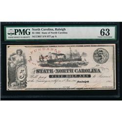 1862 $5 Raleigh NC Obsolete Note PMG 63