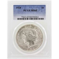 One 1924 $1 Peace Silver Dollar PCGS MS65. PCGS Graded.