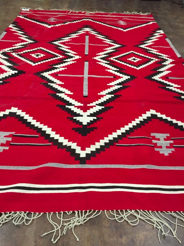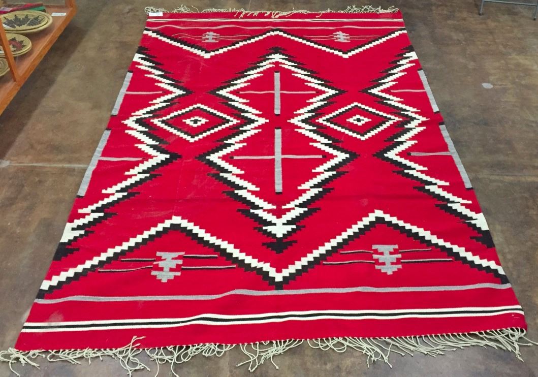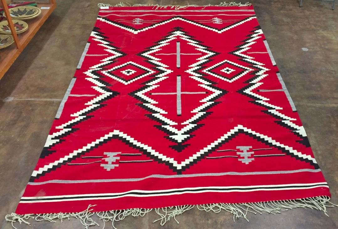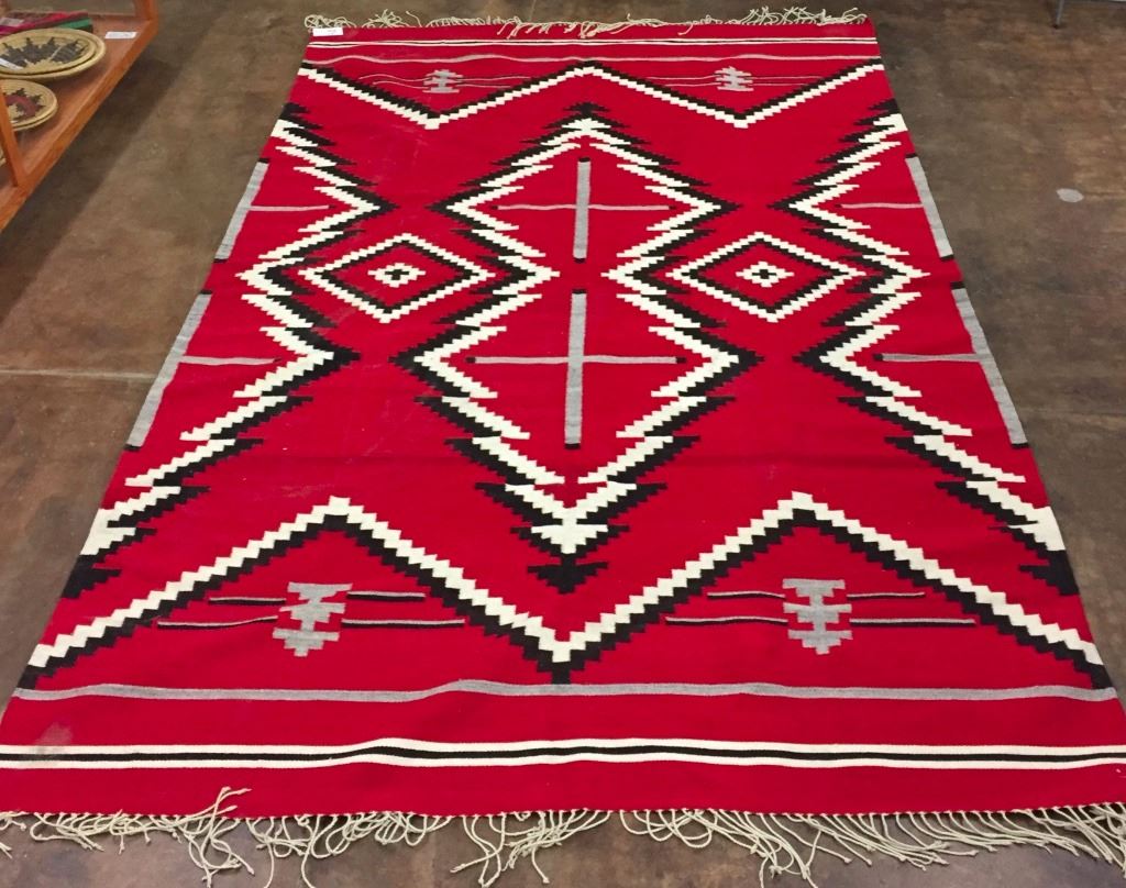 This huge rug (probably Mexico origin) measures a whopping 83" x 132"! In good vintage condition (please note, there seems to be an odor of mice urine coming from it, but no mice damage was detected). Please look closely at the pics as they are an important part of our description. Shipping: There will be a $10 handling / packaging fee for shipping this lot. The actual cost of postage will be added on top of that.