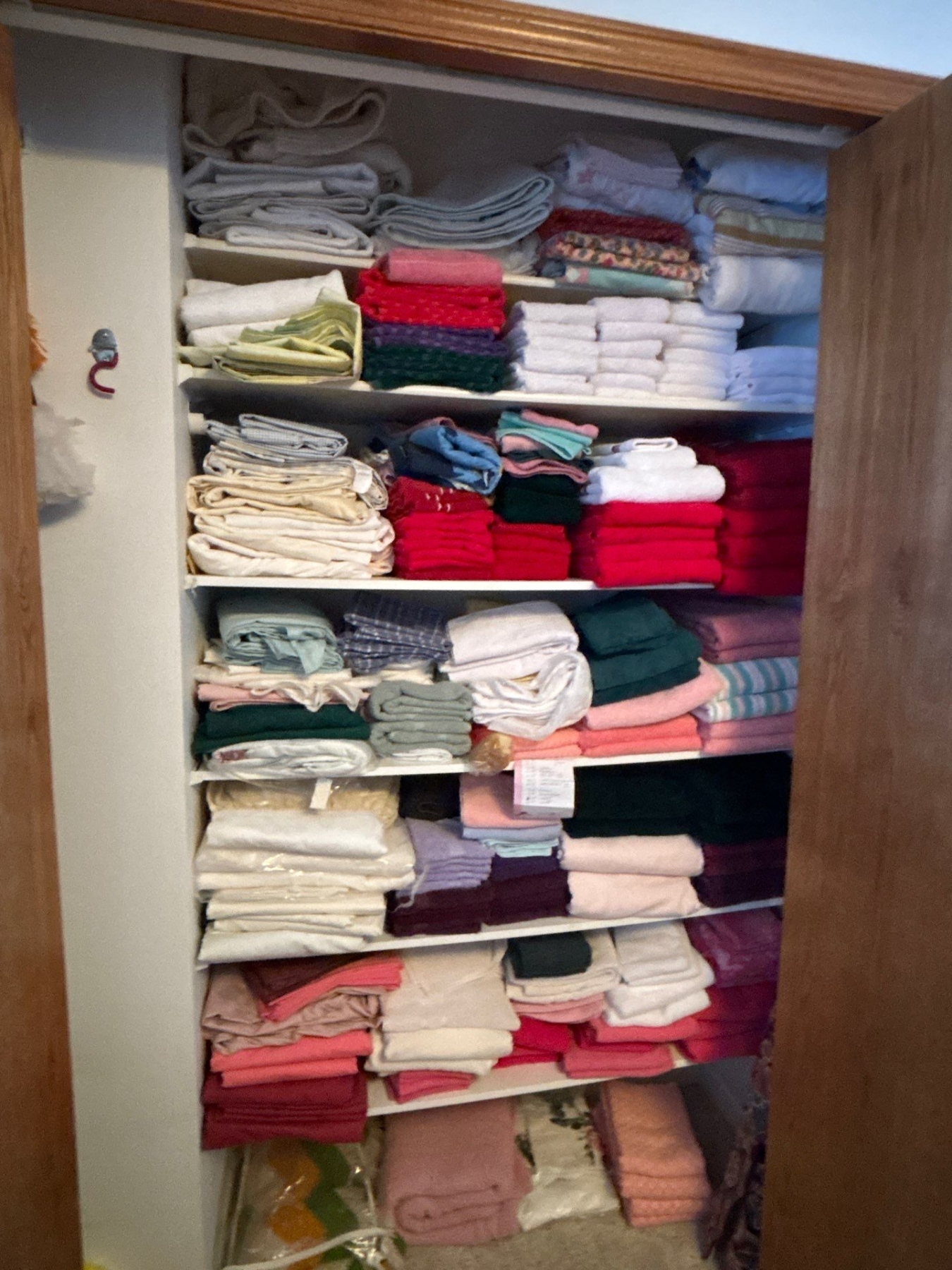 Huge assortment of towels, blankets face cloths all in great condition washed please bring boxes to pack all sold together partial list of what is in closet included in photos
