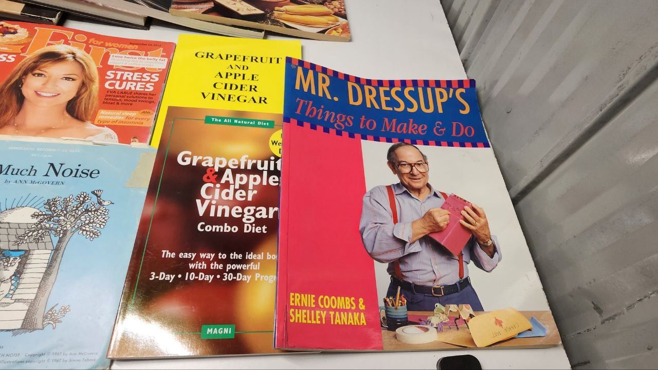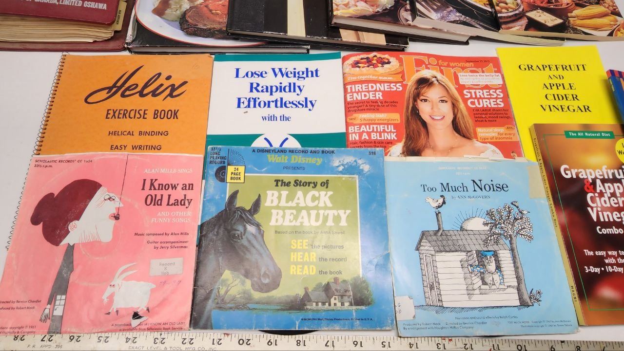 Huge lot of Assorted Books, Exercise books, Cook books, GM Service Book, Assorted Book/Song Records