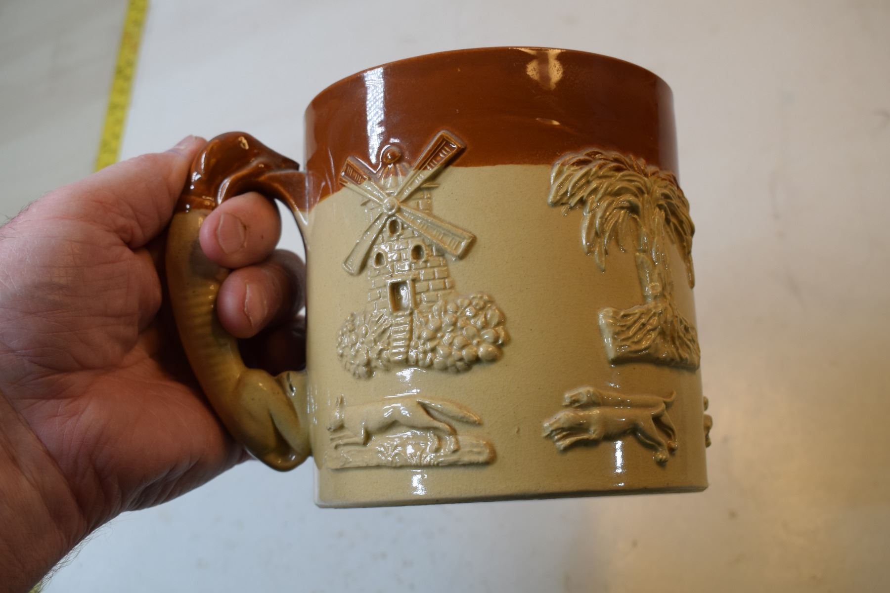 Huge pottery mug- grayhound handle