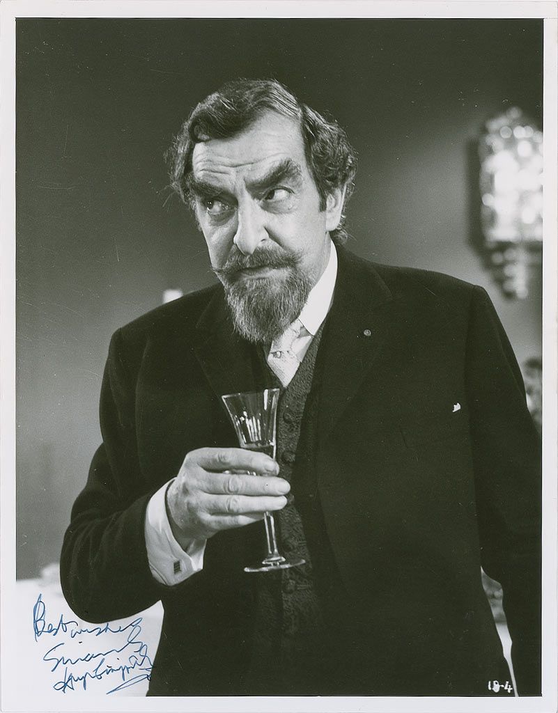 Glossy 8 x 10 photo of Griffith from 1966’s How to Steal a Million, signed in blue fountain pen “Best wishes, Sincerely, Hugh Griffith.” In fine condition, with a few light surface impressions and corner dings.