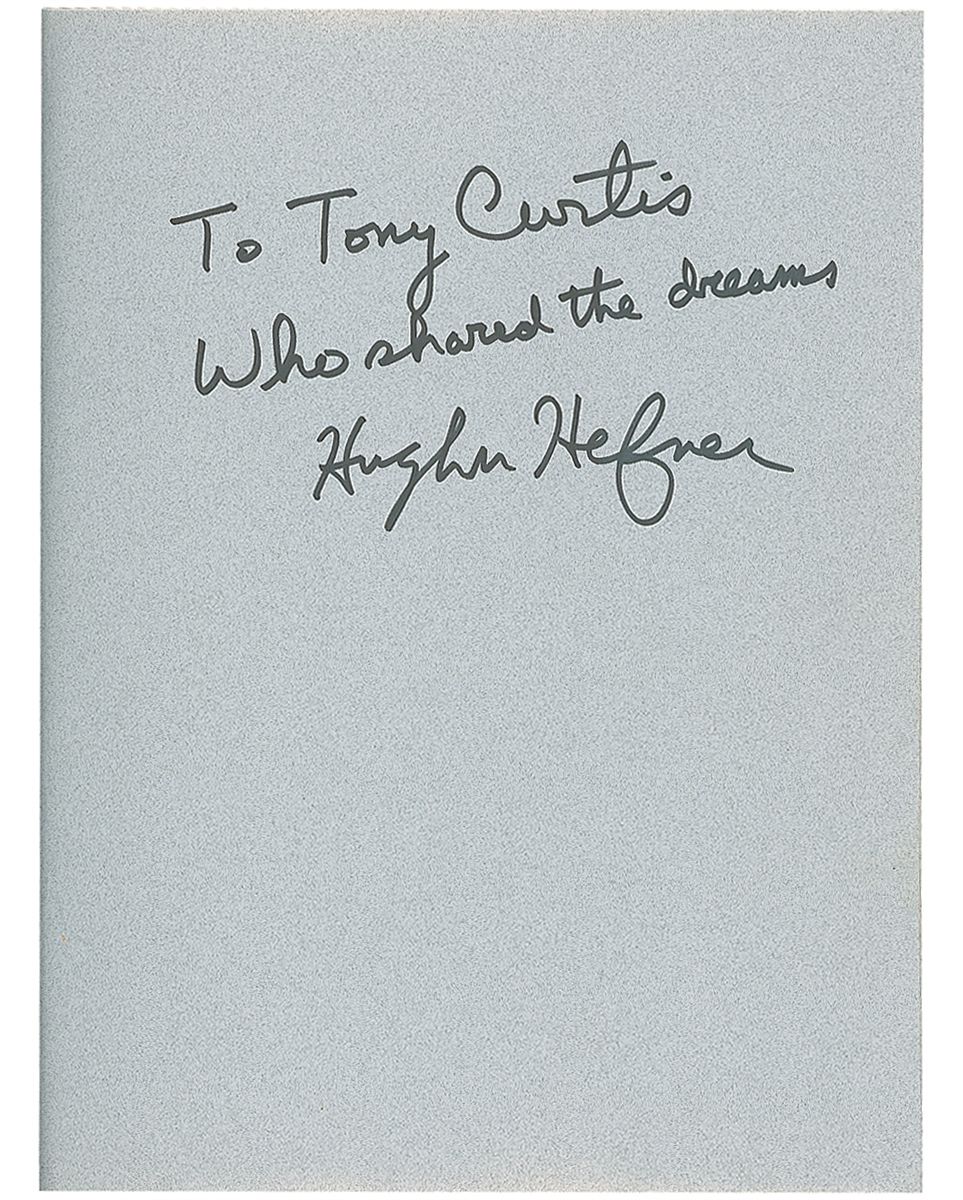 Signed book: The Playboy Book: Forty Years. First edition, first printing. Los Angeles: General Publishing Group, 1994. Hardcover with dustjacket, 9.5 x 12.25, 368 pages. Signed and inscribed on the first free end page to actor Tony Curtis, “To Tony Curtis, Who shared the dreams, Hugh Hefner.” In fine condition. Originally acquired from the estate of Tony Curtis.