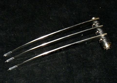 Hugh Jackman Autographed Wolverine Claw - A set of high quality metal replica claws signed by Hugh Jackman. Includes a color photo. 11" x 4" x 3"
